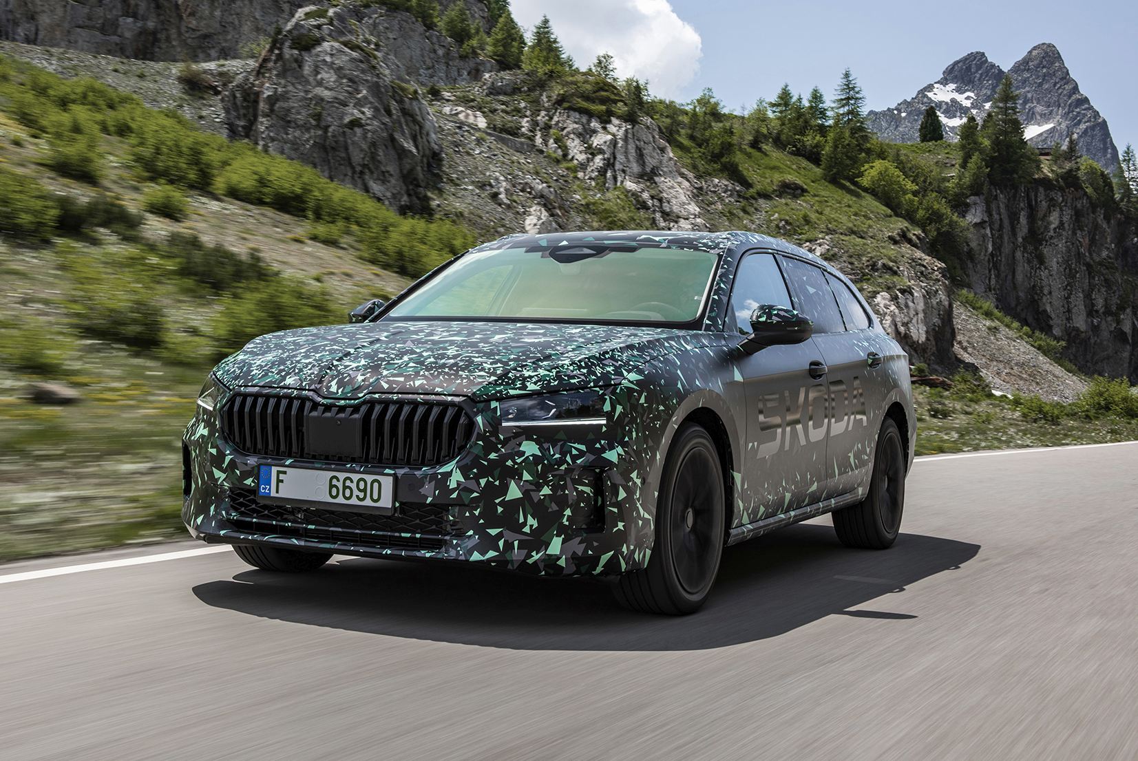 A marca checa ainda não revelou os novos modelos, mas o interior já está à vista. O habitáculo dos Kodiaq e Superb de nova geração reforça o aspeto tecnológico com novos ecrãs para o painel de instrumentos (de 10.25”) e de infoentretenimento, este com 12.9” e posicionamento de aparência flutuante.