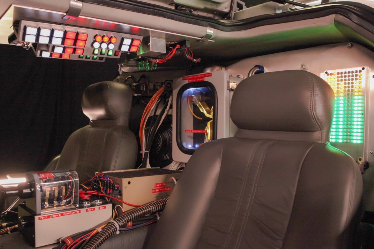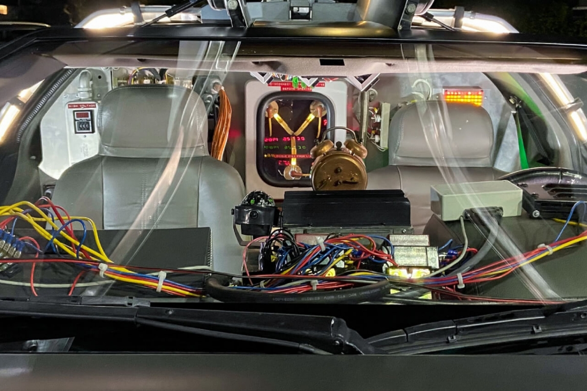 Não sendo o DeLorean original do filme, este sósia é rigorosamente igual ao carro do cinema, não faltando equipamentos como o famoso condensador de fluxo, que até foi retirado de uma das unidades usadas nas gravações.