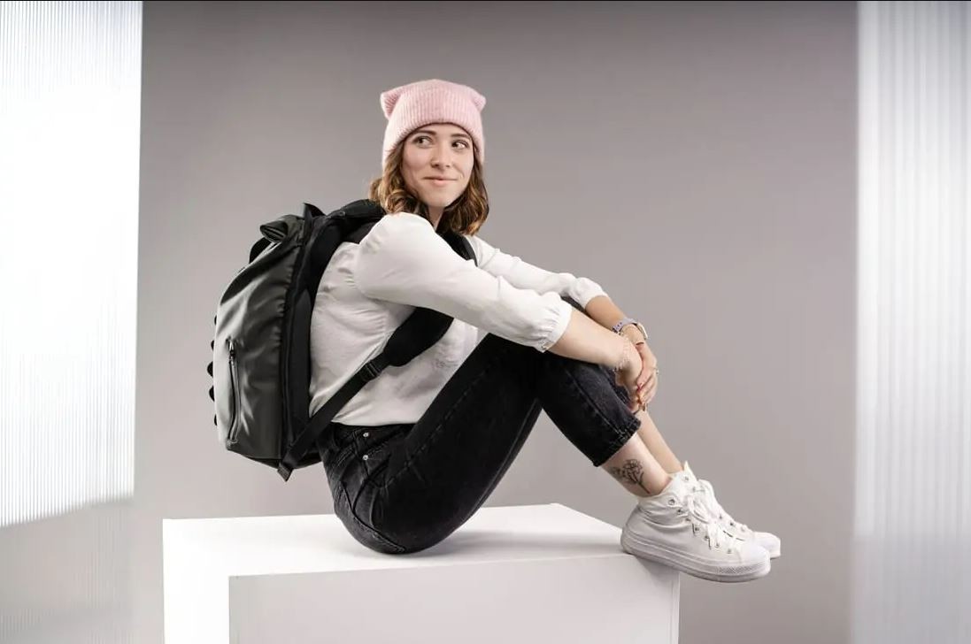 Chama-se STAN, é uma mochila com airbag, que pode não ser consensual do ponto de vista do estilo, mas salva vidas em caso de acidente.