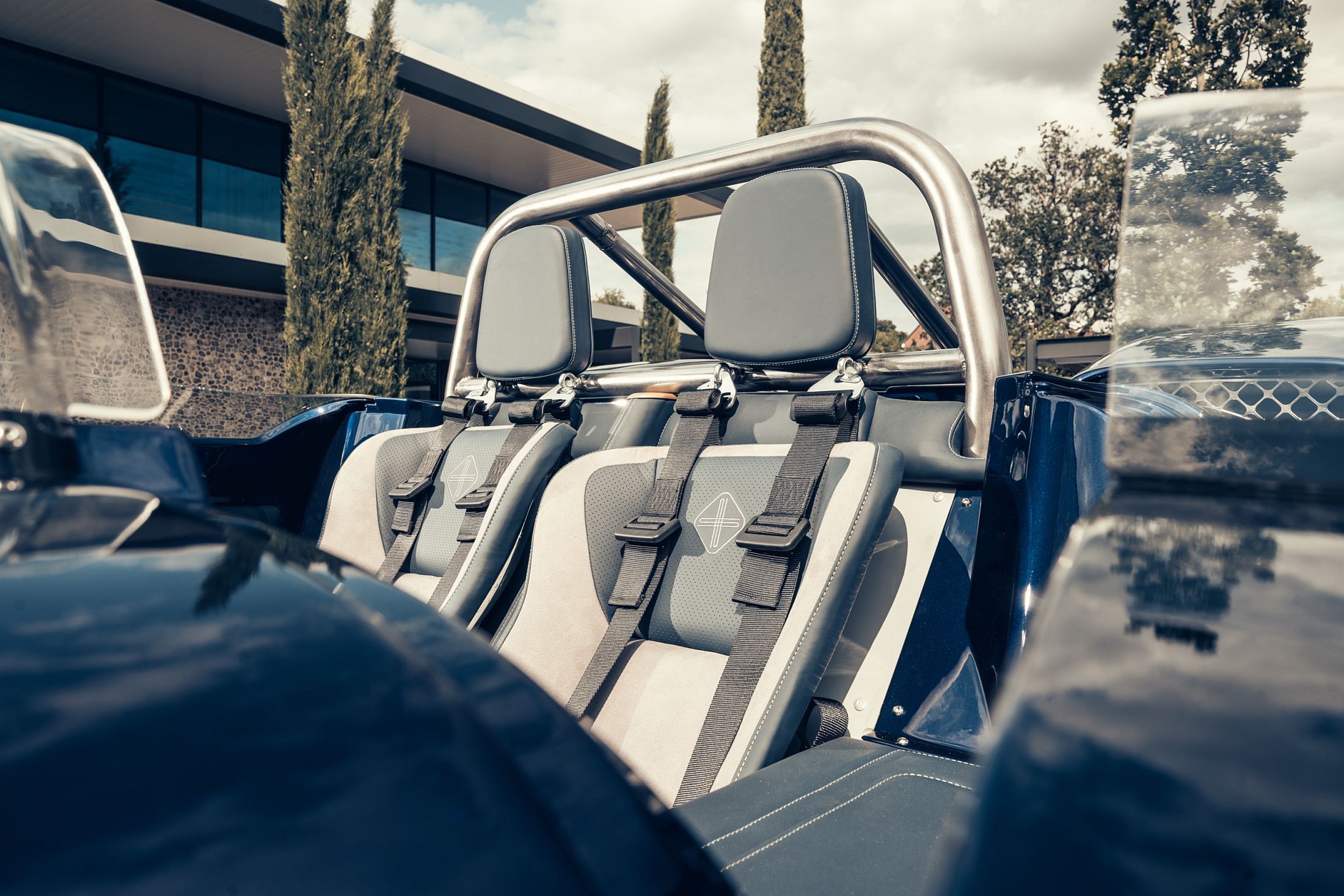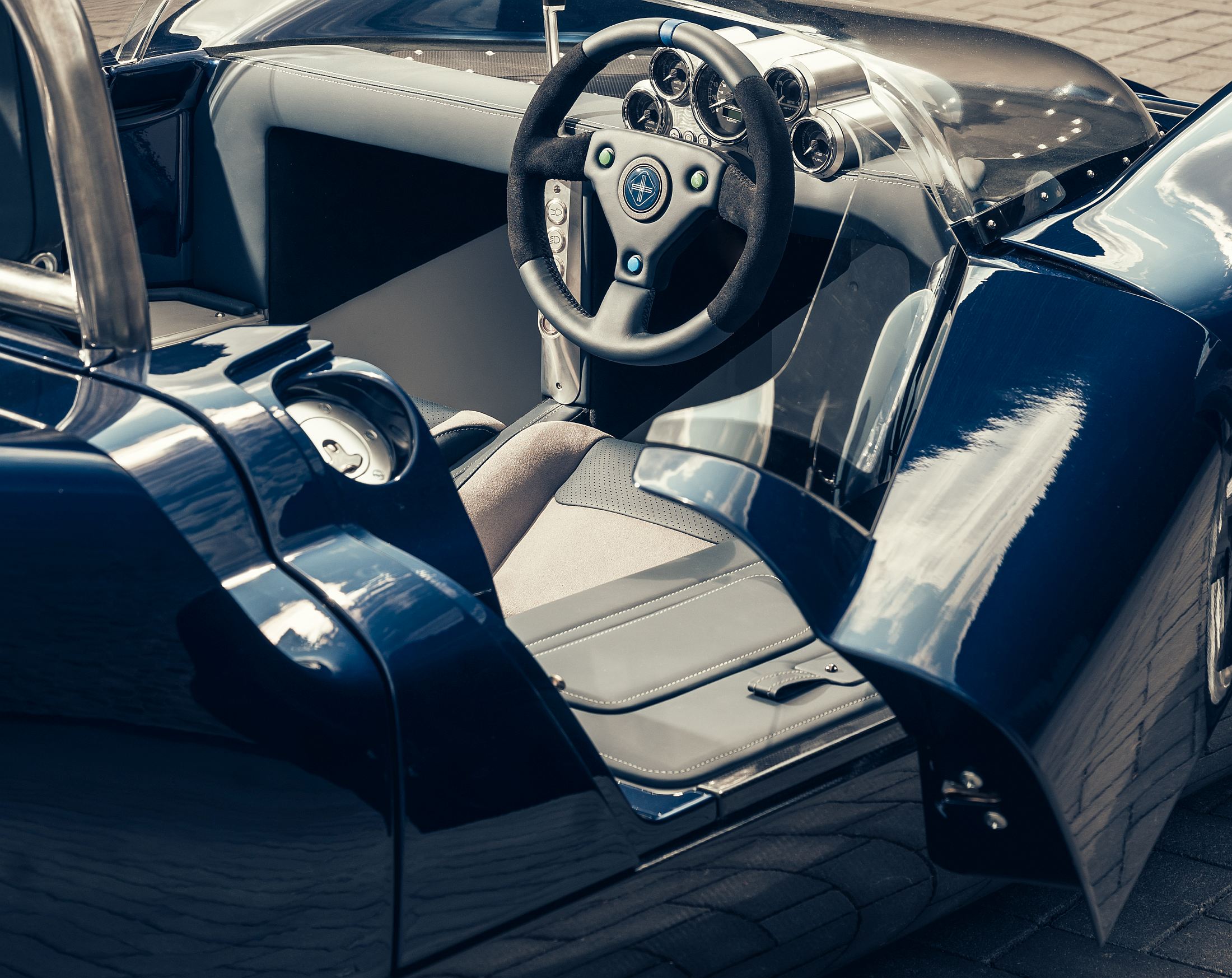 Por dentro, a abordagem muito minimalista revela proximidade visual com os automóveis de competição, nomeadamente, com alguns detalhes inspirados no MP4/4 de Senna e Prost, como o punho da alavanca da caixa de velocidades ou o banco do condutor bastante reclinado. Isso faz com que a dianteira seja muito baixa para que o condutor consiga ver a estrada por diante, mantendo-se perto do solo, com maior entrosamento, dessa forma.