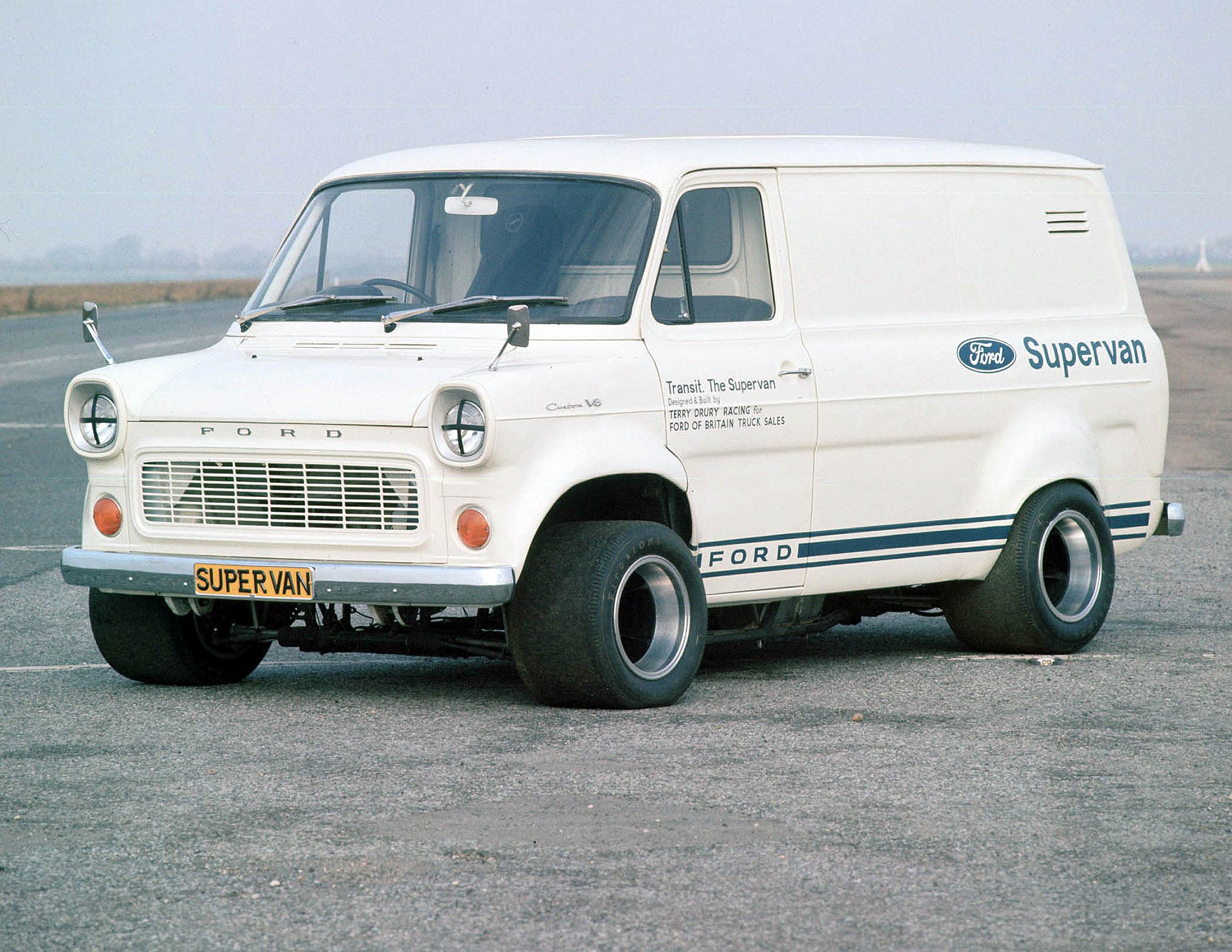 A primeira SuperVan da Ford foi revelada em 1971 e apresentava um motor em posição central, retirado do Ford GT40 vencedor de Le Mans, originando uma Transit Mk1 diferente de todas outras. A fórmula foi elevada para outro patamar na SuperVan 2, uma versão em fibra de vidro da Transit Mk2 foi montada sobre a monocoque e o V8 Cosworth de 590 CV do carro de competição Ford C100. Este conceito renasceu mais tarde no facelift da Transit Mk3 (SuperVan3), equipado com um motor Cosworth HB de 650 CV utilizado pelos carros de Fórmula 1 da época.