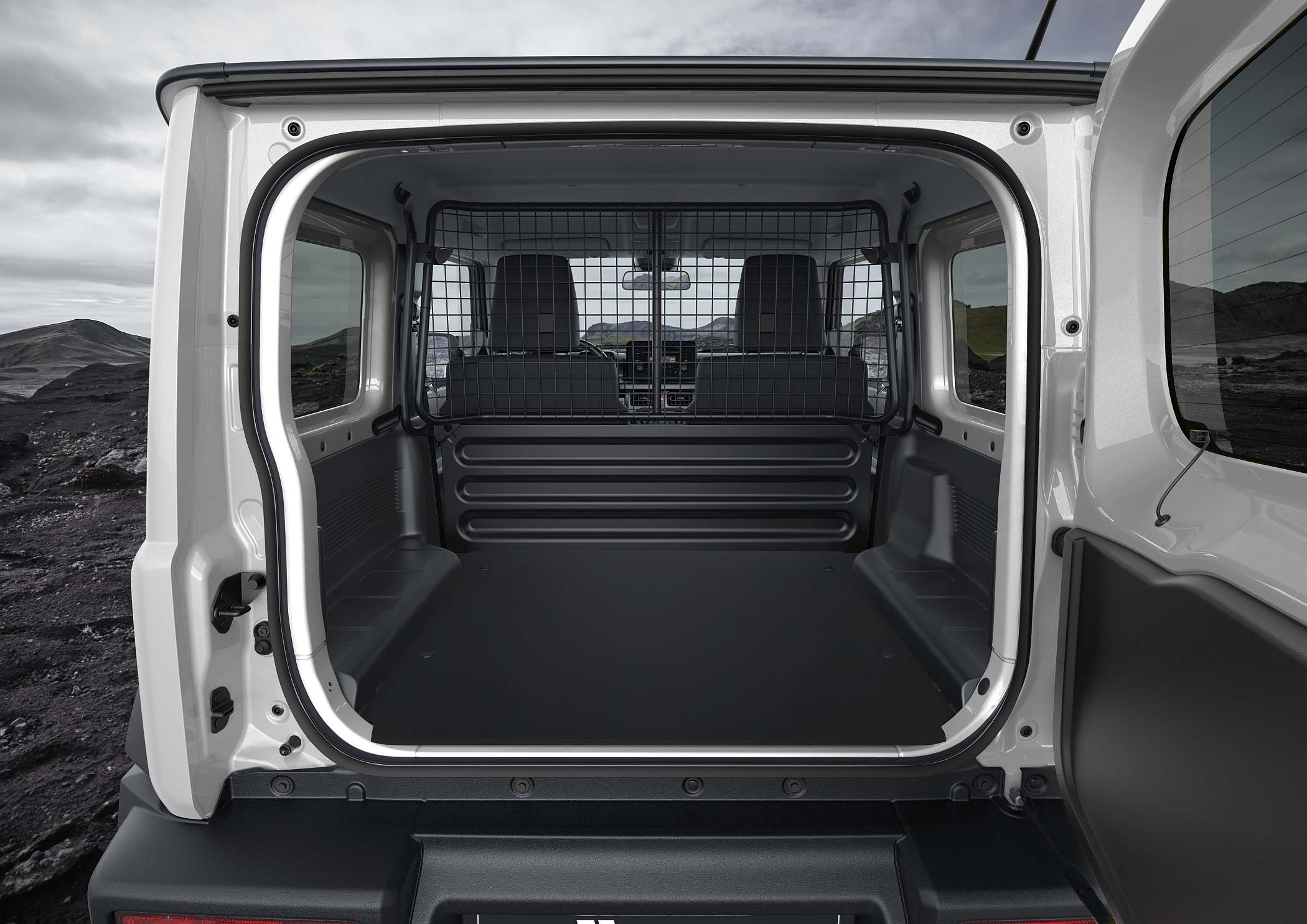 O novo Suzuki Jimny Pro adiciona, a todas as qualidades sobejamente reconhecidas do Jimny, uma prática área de carga sem assentos traseiros que foi redesenhada para facilitar a sua utilização como profissional. Com um solo plano e grelha separadora de carga, oferece um volume máximo de 863 litros, mais 33 do que a versão de passageiros com os bancos traseiros rebatidos.