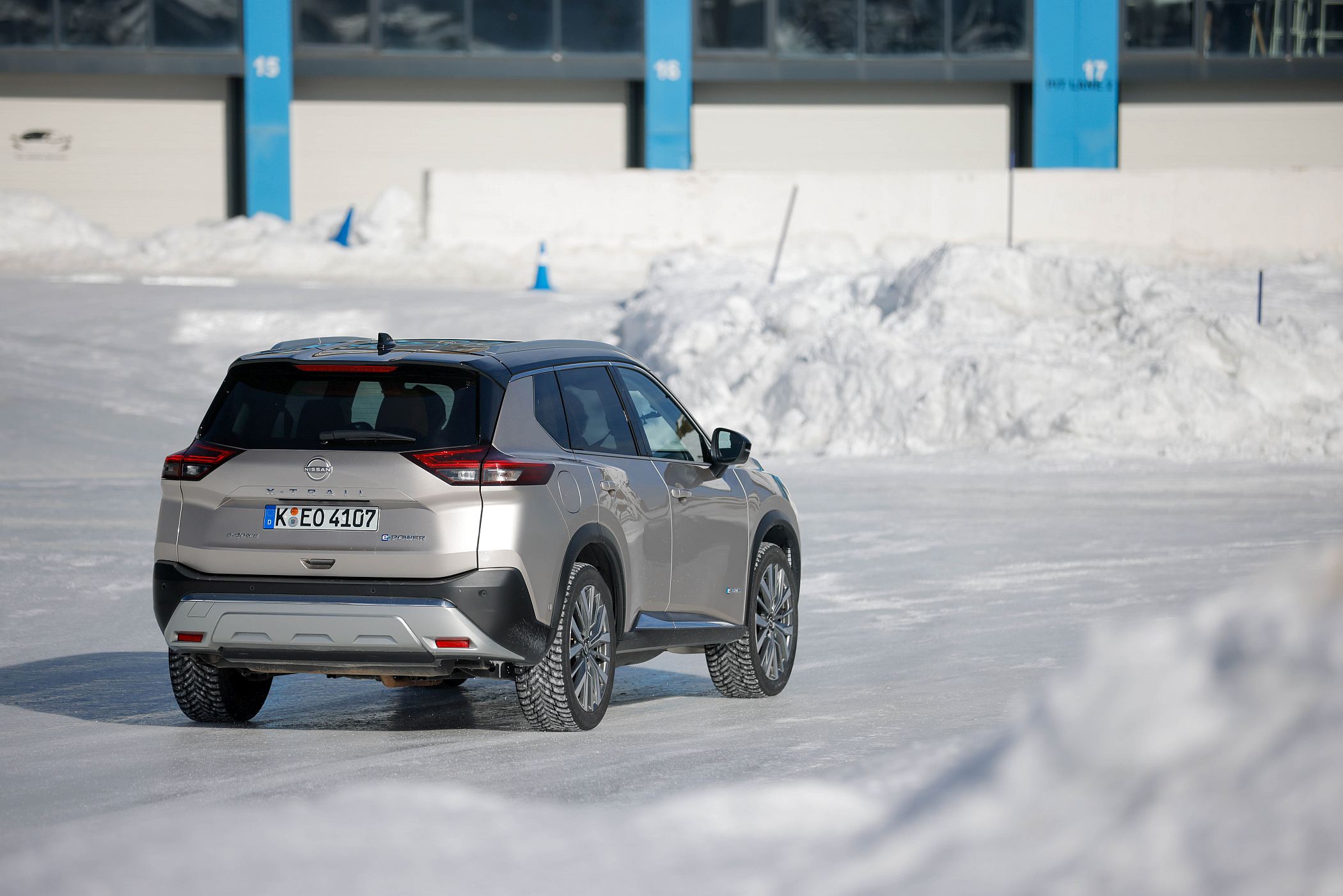 Jogando com o peso de cada veículo – uma vez mais, o X-Trail revela maior agilidade –, a direção acaba por ter o tato suficiente para oferecer um controlo muito apurado, basicamente utilizando apenas o acelerador para controlar as operações. O sistema encarrega-se de distribuir a potência de forma ajustada entre cada roda para permitir um maior controlo, ainda que, no caso do Ariya, tenhamos percebido que nalguns casos o sistema ‘corta’ a entrega da potência quando entende que a situação é demasiado perigosa – interessante na estrada, menos quando temos um circuito à mercê. Nalgumas vezes, mesmo com o pedal do acelerador a fundo, a potência apenas era transmitida de forma muito suave às rodas, limitando sobremaneira o efeito de patinamento. Não há cá espaço para manobra à Rali da Suécia… e bem.