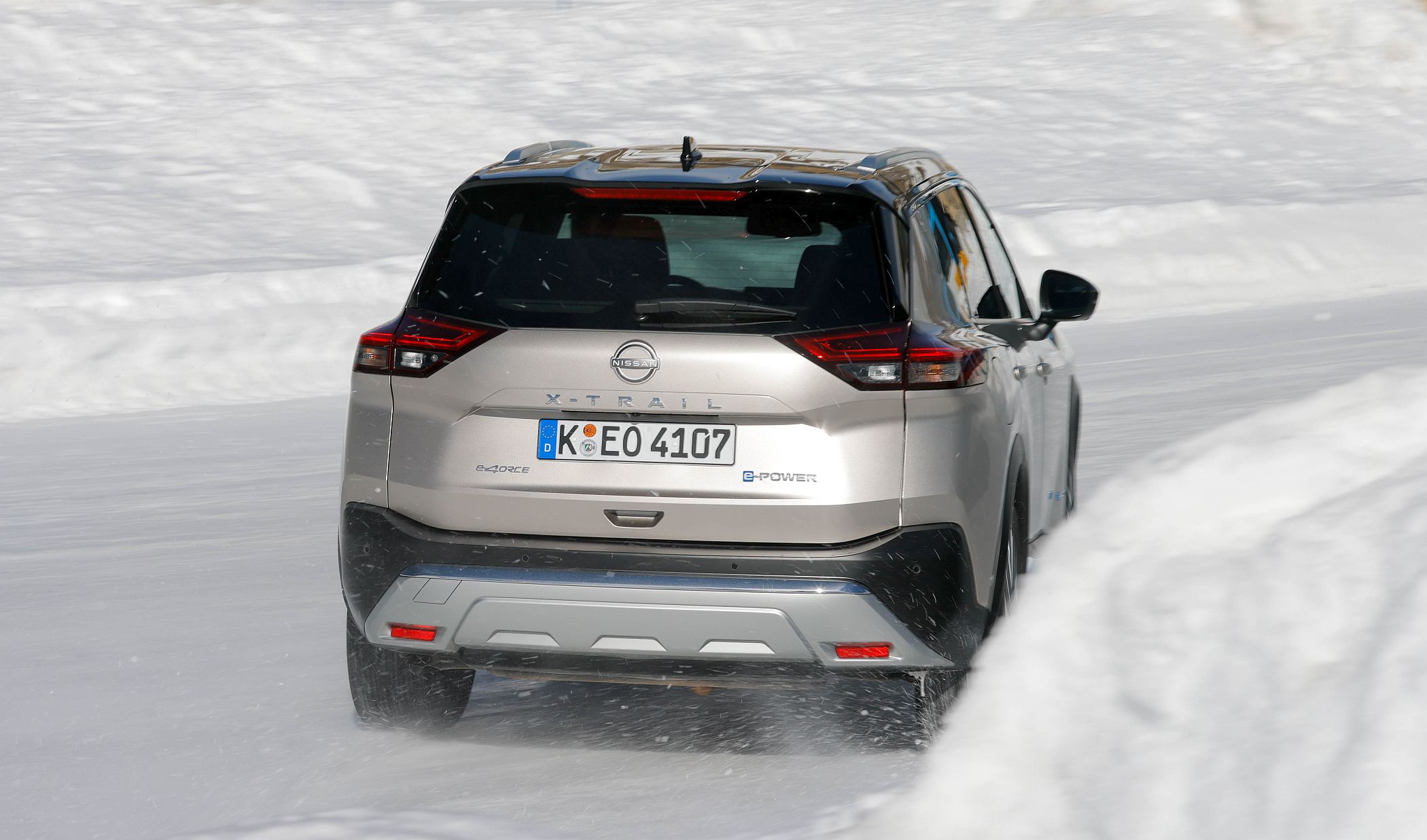No caso do X-Trail e-Power e-4ORCE, o sistema duplo de motor elétrico tem uma potência total de 157 kW/213 CV com um motor dianteiro de 150 kW/204 CV de potência e 330 Nm de binário e um motor traseiro de 100 kW/136 CV de potência e 195 Nm de binário, o que permite assim obter um sistema de tração integral com controlo eletrónico entre os dois eixos, com uma aceleração dos zero aos 100 km/h em 7,0 segundos.