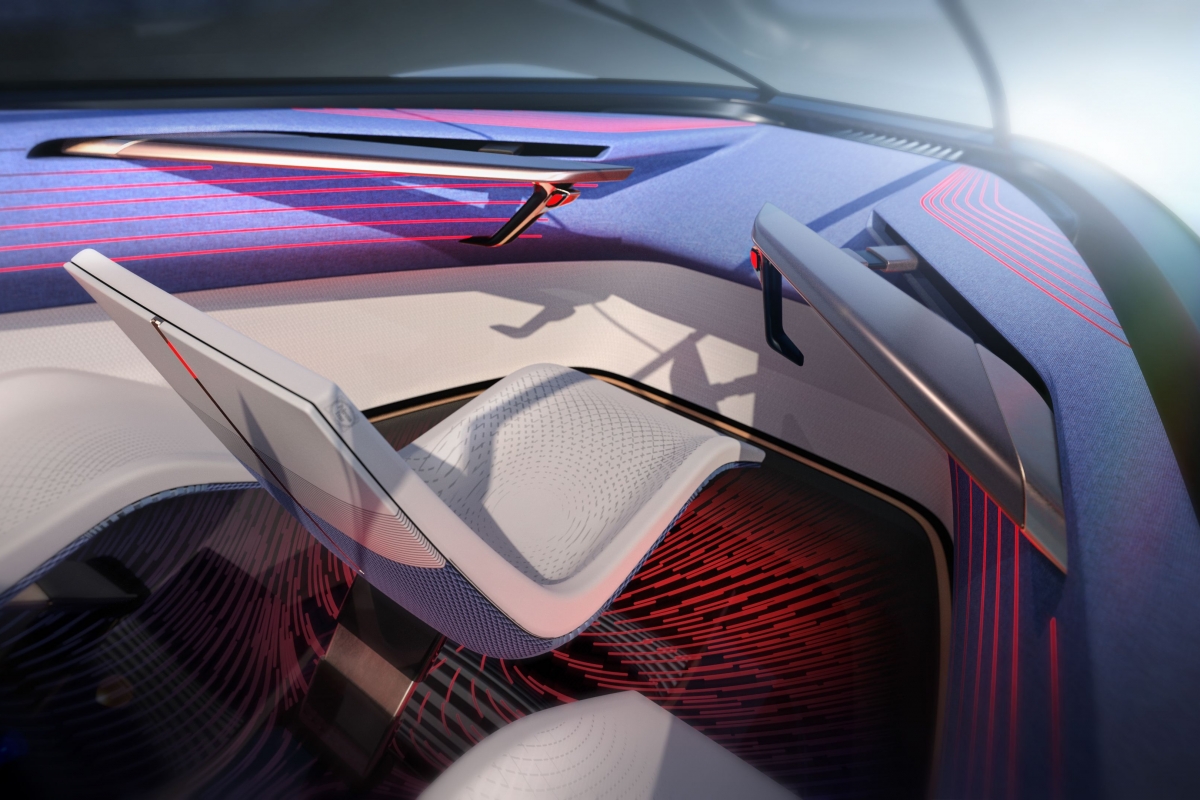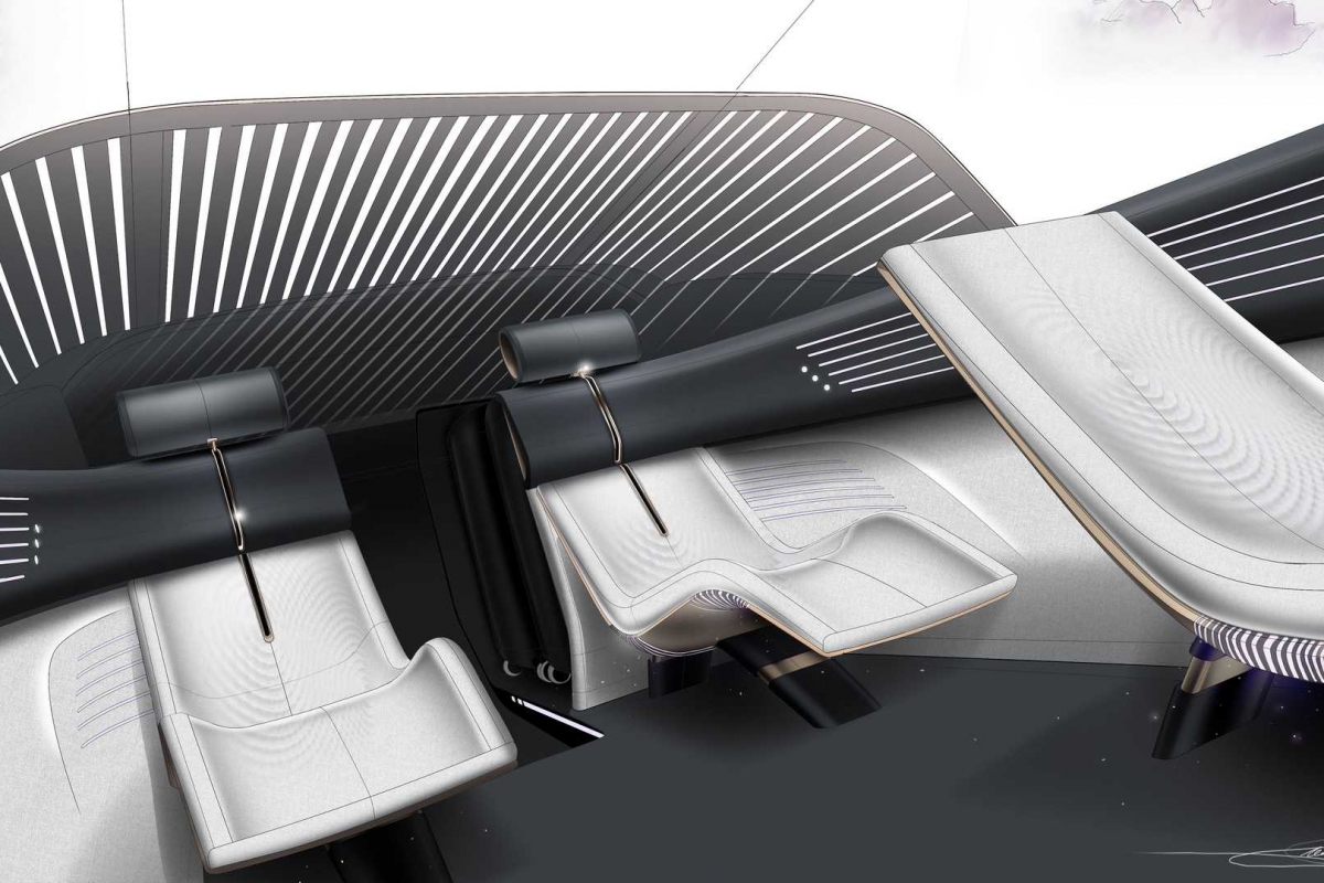 O concept está pensado para incorporar tecnologia de condução autónoma de nível 4, embora esteja disponível um modo Drive, que permite que o ocupante mais à frente assuma o comando da viatura (por meio do que parece ser uma espécie de joystick…), além de um modo Rest, que admite a transformação do habitáculo num amplo espaço de convívio ou reuniões, sendo possível girar os bancos a 180 graus.