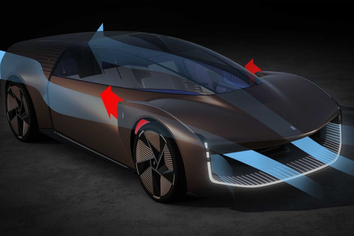 Na imagem, destaque para a frente muito estilizada com avantajadas entradas de ar laterais para canalizar o ar da dianteira para a traseira, melhorando muito a eficiência aerodinâmica e a permitir anunciar ganhos importantes para a autonomia.