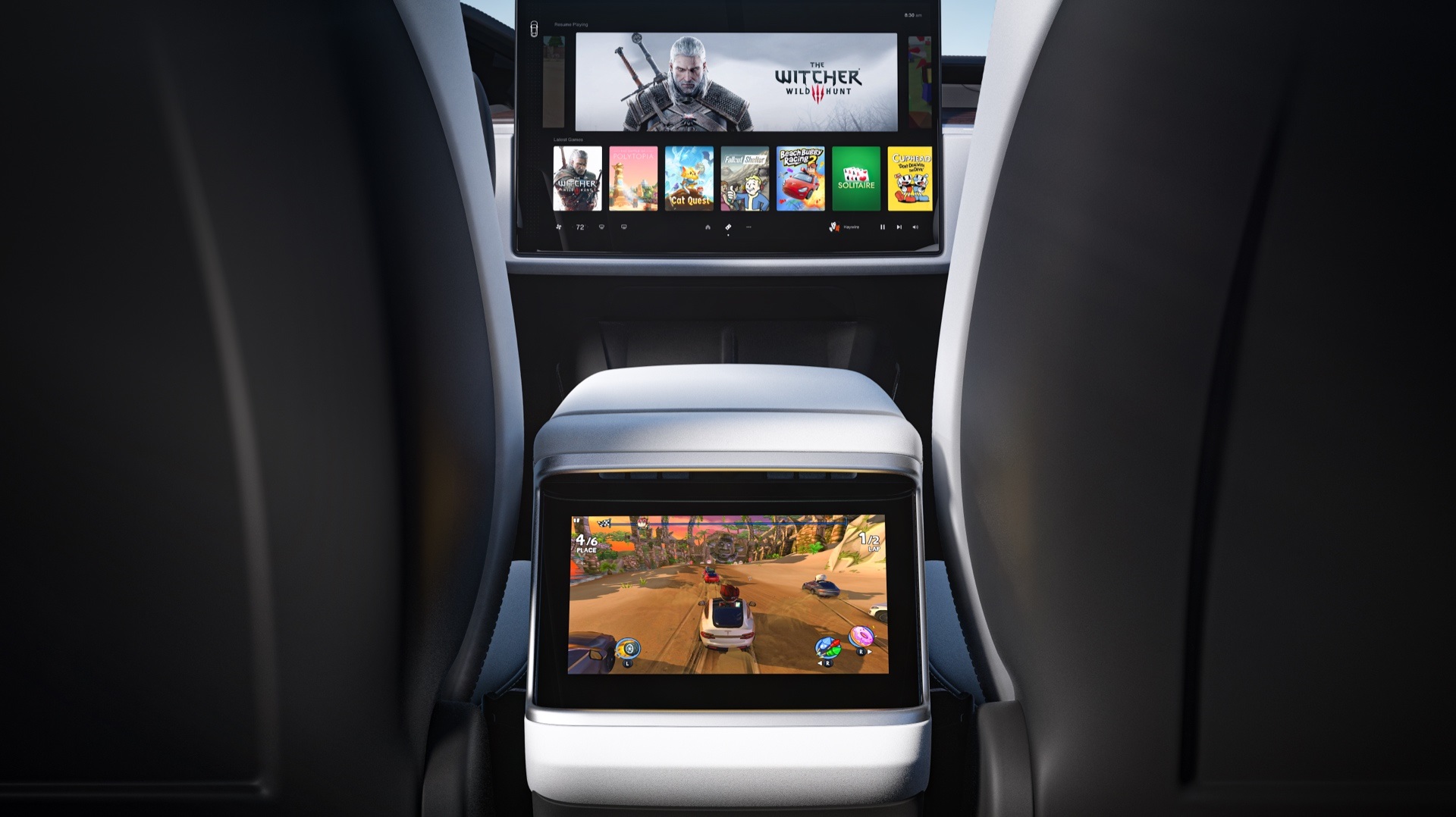 Para os passageiros dos bancos traseiros há um novo ecrã de 8.0 polegadas (situado na parte traseira da consola central), com foco na possibilidade de multimédia avançada, como jogos de vídeo. Os novos modelos da Tesla incluem ainda múltiplas ligações Bluetooth, carregamento sem fios e carregamento rápido USB-C para todos os passageiros, incluindo a possibilidade de carregar os portáteis, e sistemas de som com 22 altifalantes (960 watts) e sistema de cancelamento de ruído.