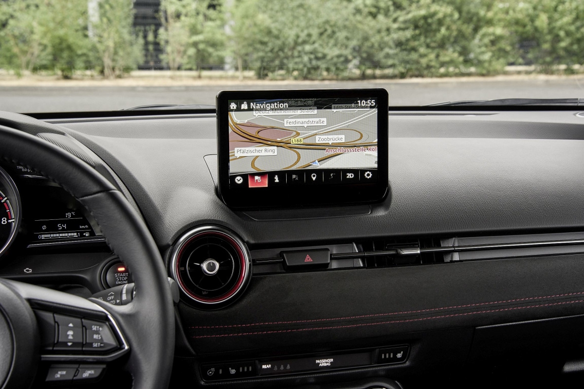 O modelo ensaiado dispunha da motorização Skyactiv-G 1.5 com 75 cv, sendo que a marca disponibiliza mais dois níveis de potência: 90 cv e 115 cv, todos aspirados. O comportamento dinâmico é surpreendentemente divertido. A caixa manual de seis velocidades é bem escalonada, o motor é linear e o chassis é comunicativo, previsível e aceita mudanças de direção sem reclamar, graças ao sistema G-Vectoring Control Plus (GVC Plus), que permite melhorar a estabilidade dinâmica.