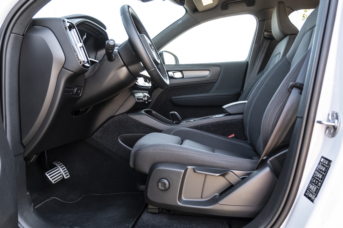 Ainda assim há espaço disponível para acolher quatro adultos muito confortavelmente, sendo o lugar do meio do banco de trás penalizado pela existência do túnel de transmissão reservado ao irmão XC40 que ainda monta um motor de combustão. A bagageira disponibiliza 419 litros e na frente ainda há um compartimento com mais 30 litros, onde se podem guardar os cabos de carregamento.