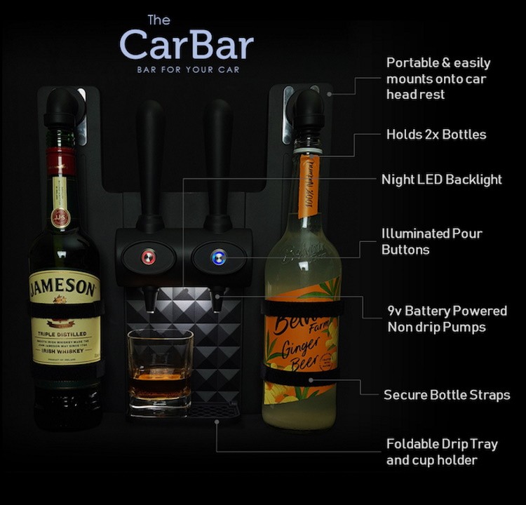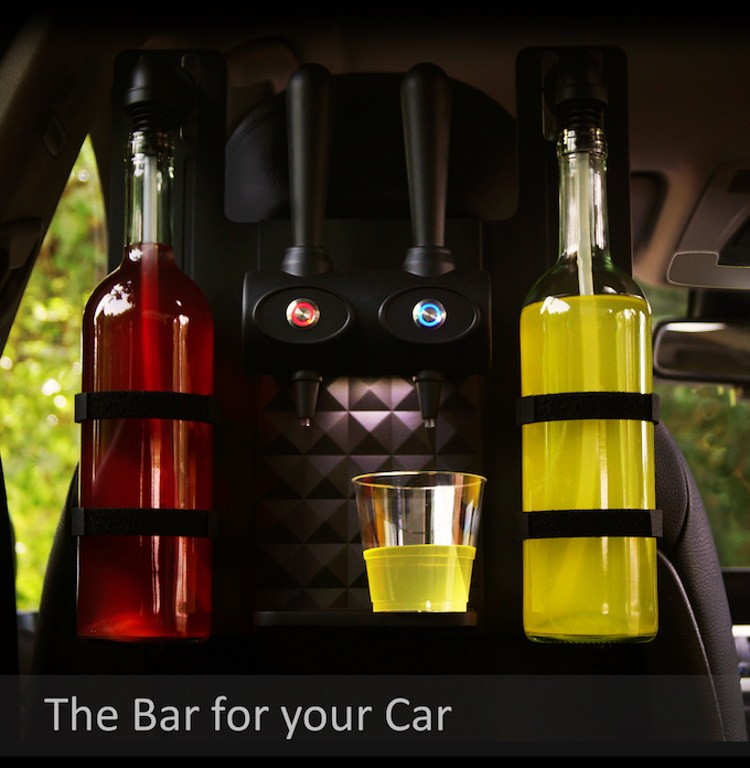 O mundo dos acessórios para automóvel está repleto de boas ideias… e de soluções como ‘Car Bar’, uma máquina de bebidas para prender no banco do condutor…