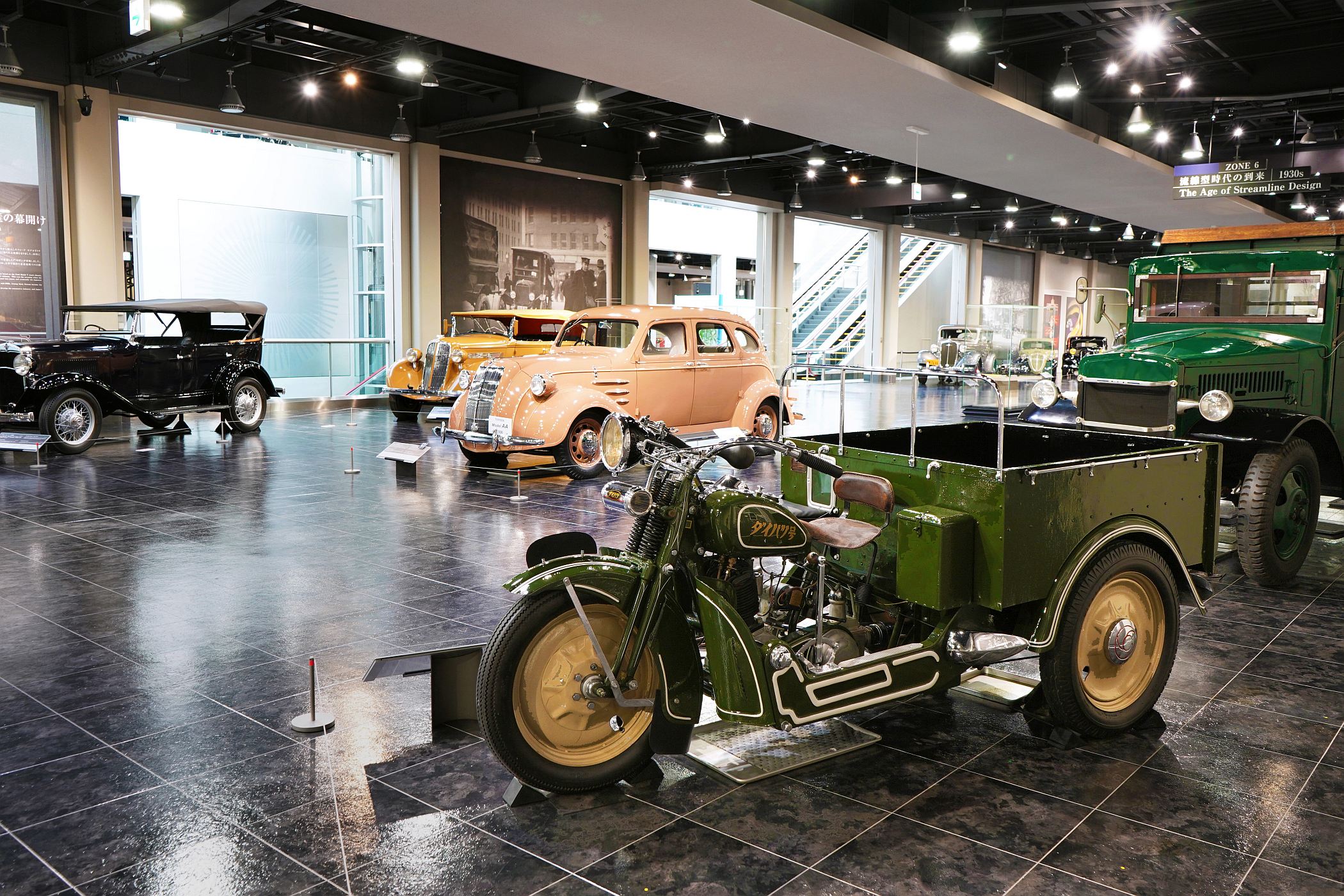 Entre os modelos mais famosos dos primórdios do automóvel está o Benz Patent Motorwagen de 1886 (réplica do original), o Panhard et Levassor 6HP Wagonette de 1898, ou o incontornável Ford Model T Touring de 1909. Existem também diversos Citroën, Renault, Rolls-Royce até um Fiat 500 Topolino de 1936. Do mesmo ano, estão disponíveis dois exemplares do Toyoda AA que foi o primeiro automóvel de passageiros produzido pela companhia japonesa.