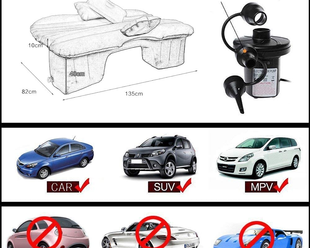 Trata-se de um prático e resistente colchão insuflável, que se adapta aos bancos posteriores do automóvel.