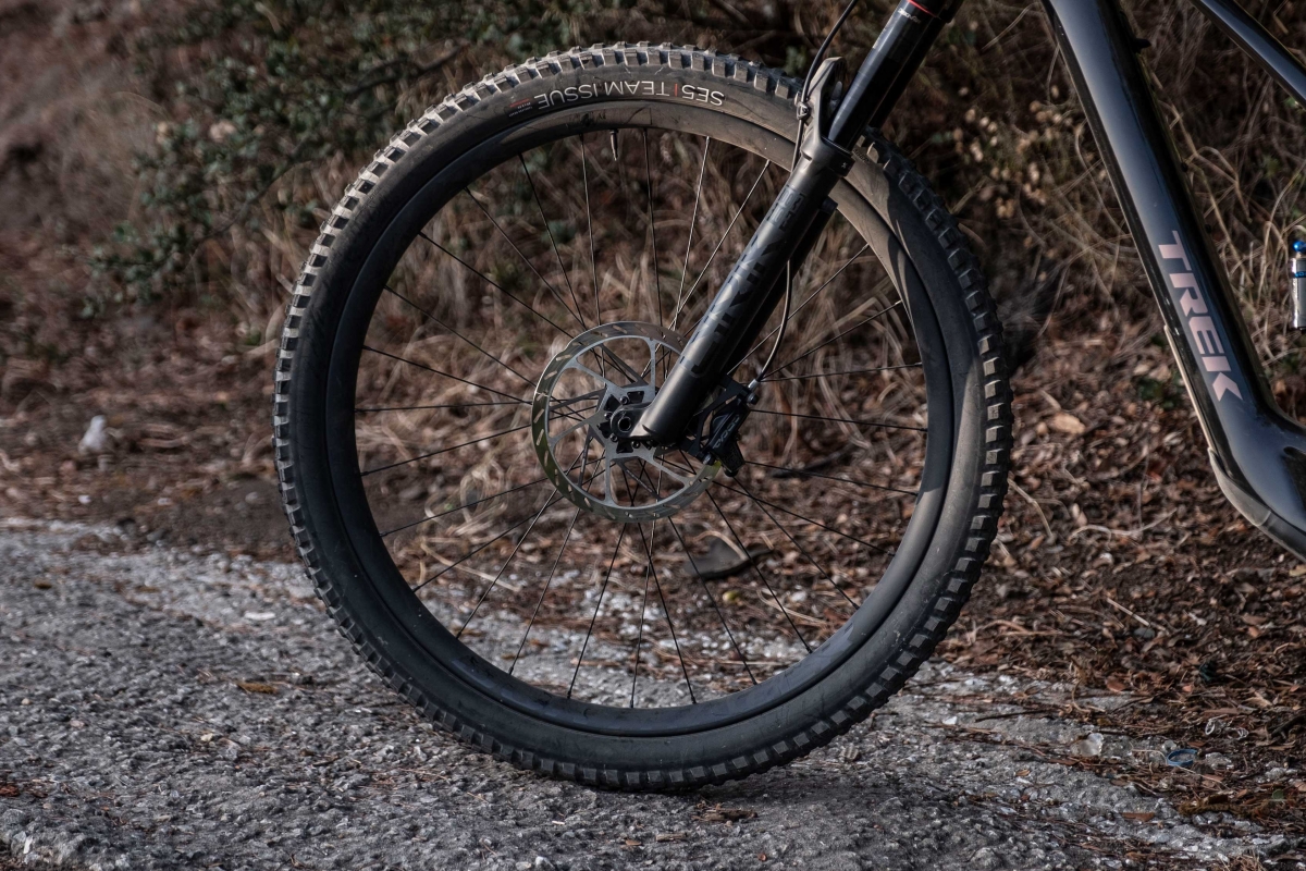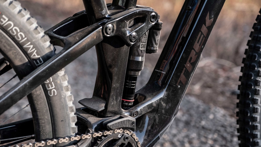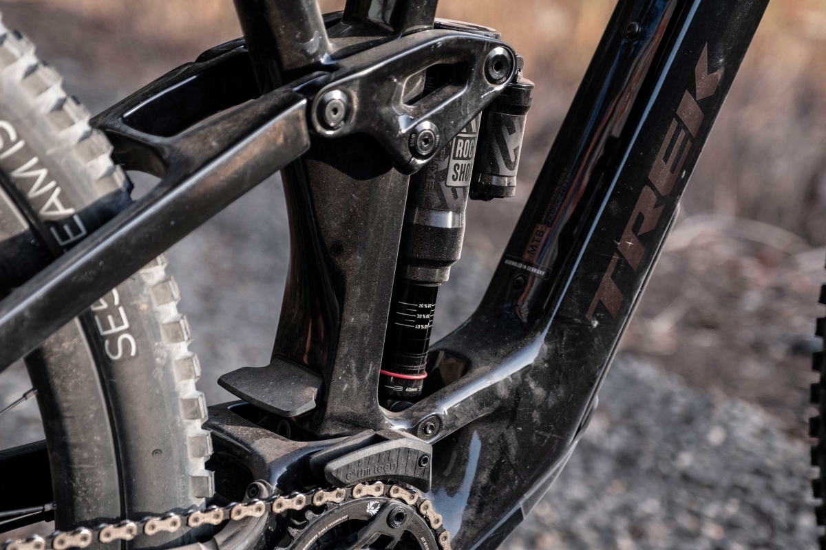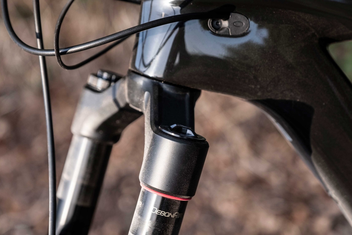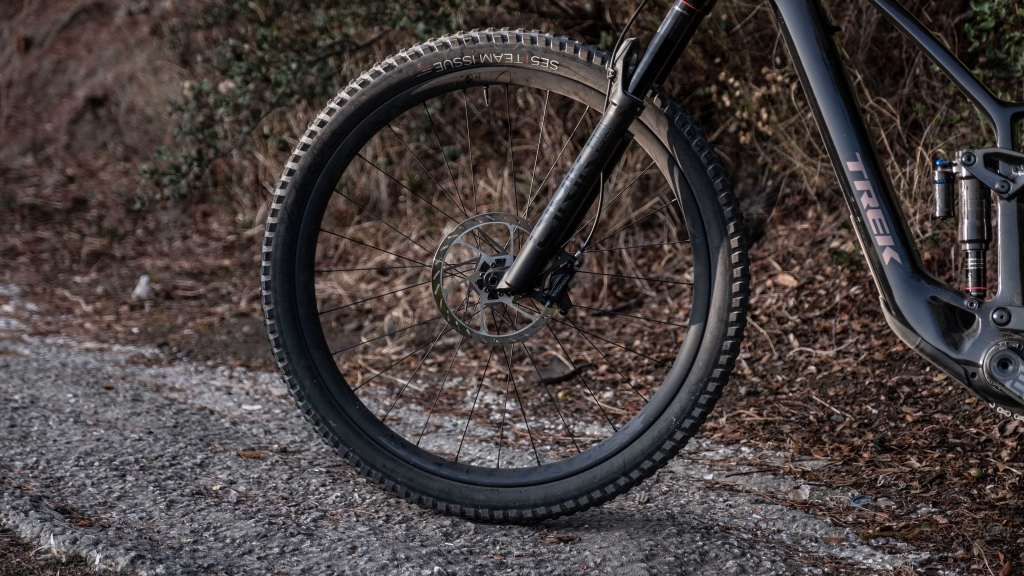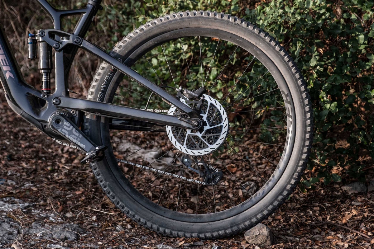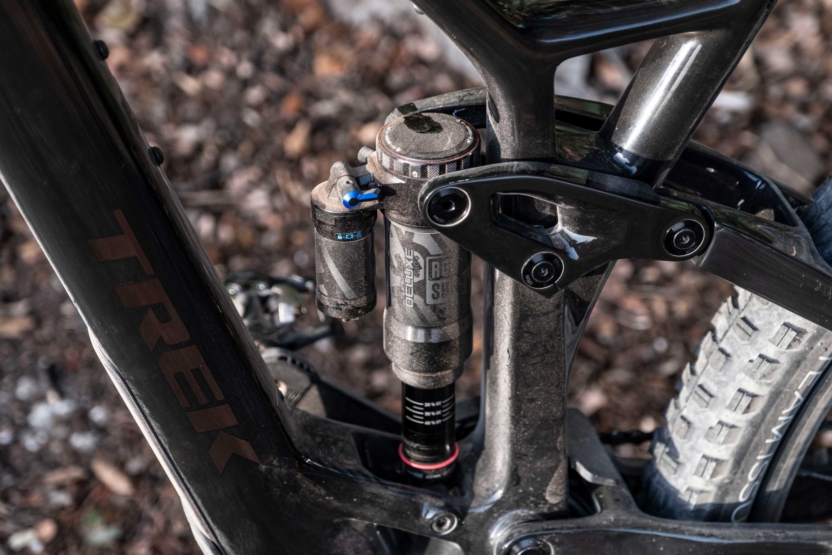Para complementar o quadro em carbono OCLV, a Trek disponibiliza uma gama alargada de opções para escolher. A versão que testámos representa o topo da gama e, como tal, é a que está equipada com os componentes mais sofisticados. Começando pela suspensão RockShox Lyrik Ultimate com 150 mm de curso e o amortecedor Super Deluxe Ultimate. As pressões recomendadas podem ser consultadas no smartphone com as aplicações SRAM AXS ou Trek Central. Os mesmos sensores também equipam as rodas Line Pro, em carbono da Bontrager, igualmente para monitorizar a pressão dos pneus.