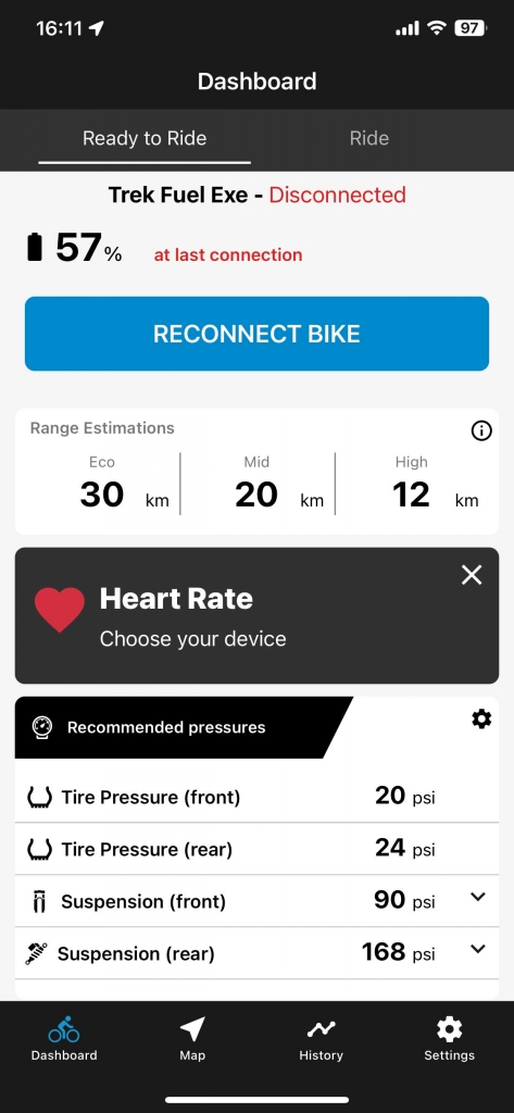 Os três modos de funcionamento disponíveis são escolhidos num controlo junto ao punho esquerdo, com confirmação visual num pequeno ecrã de alto contraste integrado na parte superior do quadro. Todas as definições são personalizáveis utilizando a aplicação Trek Central para iOS e Android.