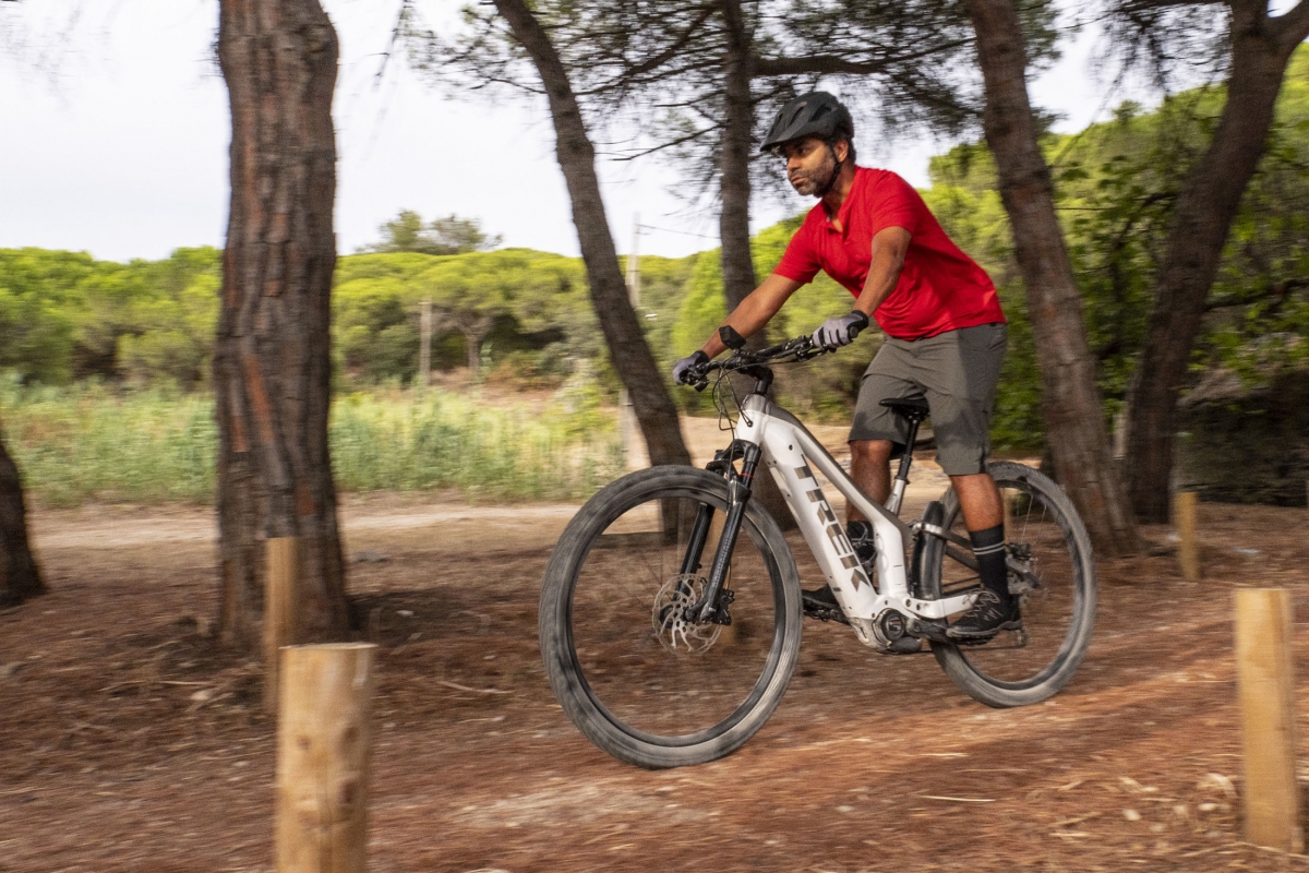 De um modo geral o equipamento escolhido é bom: a transmissão é Shimano SLX/XT, os travões Shimano SLX, o espigão de selim hidráulico é um TransX com 120 mm de curso e o amortecedor é um RockShox SIDLuxe Select+, no entanto a forquilha RockShox 35 Gold RL com 120 mm de curso podia ser melhor, durante o nosso teste nunca conseguimos que tivesse um funcionamento linear, sobretudo nos trilhos demonstrando falta de sensibilidade e consequentemente conferindo pouca tração à roda da frente. Nos tamanhos XS e S as bicicletas vêm com rodas de 27,5”, já nos restantes M, L e XL a Trek optou por rodas de 29”, para um comportamento consistente entre as diversas medidas.