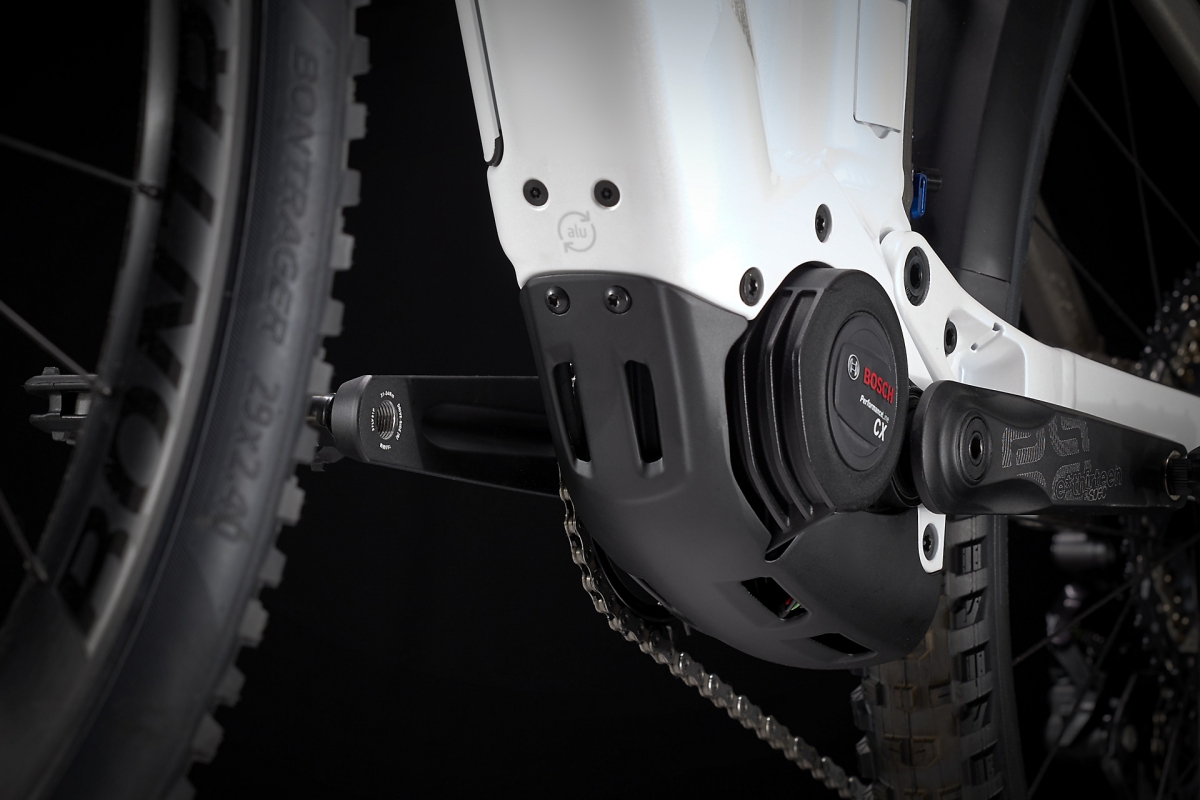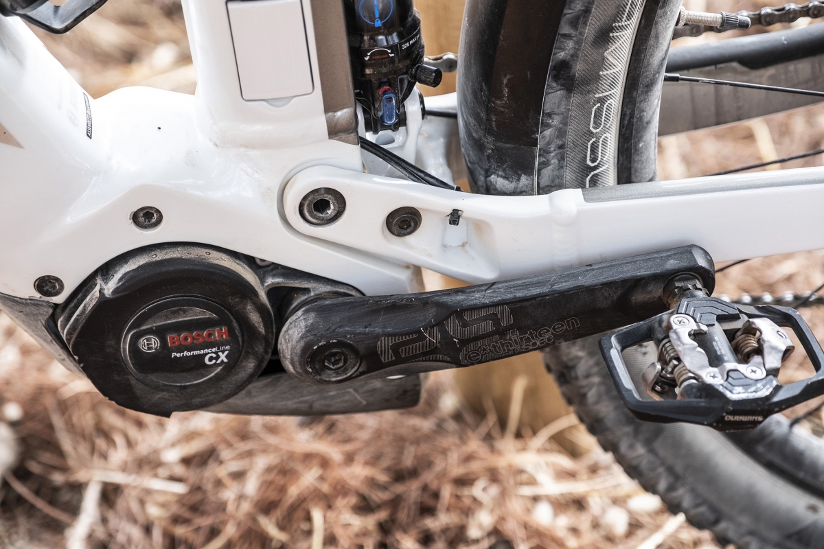 A ajuda à pedalada está a cargo do novo motor Bosch Performance Line CX que produz 85 Nm de torque devidamente integrado no quadro e uma bateria de 625 Wh que pode ser retirada facilmente do tubo inferior e tem uma pega de transporte para poder levar para casa e recarregar. Para controlar o sistema, verificar o estado da bateria e emparelhar com o smartphone temos um ecrã TFT Kiox montado em frente ao avanço onde até é possível carregar ficheiros com trilhos para fazer navegação e pode ser retirado para levarmos no bolso quando não estamos a andar na bicicleta.