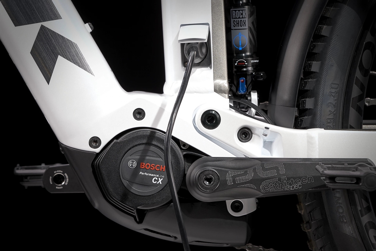 Quadro: Alumínio Alpha Platinum, Bateria Integrada Removível (RIB), tubo de direção cónico, guias internas dos cabos, Proteção de Motor, braço oscilante em magnésio, pontos de fixação para porta-bagagens e guarda-lamas, ABP, Boost148, curso de 100 mm Forquilha para tamanhos XS , S: RockShox 35 Gold RL, mola DebonAir, amortecimento Motion Control, bloqueio, coluna de direção cónica, offset de 44 mm, coroa sobredimensionada para bicicleta elétrica de montanha, Boost110, eixo Maxle Stealth de 15 mm, curso de 100 mm Forquilha para tamanhos M , L , XL: RockShox 35 Gold RL, mola DebonAir, amortecimento Motion Control, bloqueio, coluna de direção cónica, coroa sobredimensionada para bicicleta elétrica de montanha, eixo Maxle Stealth de 15 mm, curso de 120 mm Amortecedor: RockShox SID Lux Select+, 190×45 mm curso Rodas: Bontrager Line Comp 30, Tubeless Ready, eixo passante de 12 mm atrás, 15 mm na frente. Transmissão: Shimano SLX M7100, 12 velocidades Desviador traseiro: Shimano XT M8100, caixa longa, carreto máximo de 51D Pedaleiro: E*thirteen E*spec Plus, 34D, comprimento 165 mm Cassete: Shimano SLX M7100, 10-51, 12 velocidades Corrente: Shimano SLX M7100, 12 velocidades Tamanho máximo do prato pedaleiro: Max: 46T, Min 34T Selim: Bontrager Arvada, carris em aço, largura de 138 mm Espigão de selim nos tamanhos XS , S , M: TranzX JD-YSP18, curso de 100 mm Espigão de selim nos tamanhos L , XL: TranzX JD-YSP18, curso de 130 mm Guiador: Bontrager alumínio, 31.8mm, elevação de 15mm, largura de 750mm Punhos: Bontrager XR Trail Comp, fixação de nylon Avanço nos tamanhos XS , S: Bontrager Elite, 31.8 mm, compatível com Blendr, 7 graus, comprimento de 60mm Avanço nos tamanhos M , L , XL: Bontrager Elite, 31.8mm, compatível com Blendr, 7 graus, comprimento de 70 mm Travões: disco hidráulicos de 4 pistões Shimano, manete M6100, pinça M6120 Rotor de travão: 203 mm Bateria: Bosch PowerTube 625 Carregador: Carregador standard Bosch 4 A (220-240V) Controlador: Bosch Kiox com função anti-roubo Motor: Bosch Performance CX, corpo do motor em magnésio, 250 watts, 85 Nm, velocidade máxima assistida 25 km/h Peso tamanho M: 24.37 kg (com selante TLR, sem câmaras de ar) Limite de peso: Esta bicicleta tem um limite de peso máximo (peso combinado da bicicleta, ciclista e carga) de 136 kg. Preço: a partir de 5 999 euros