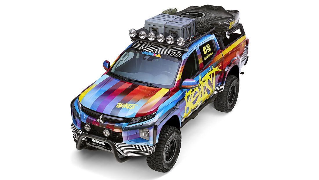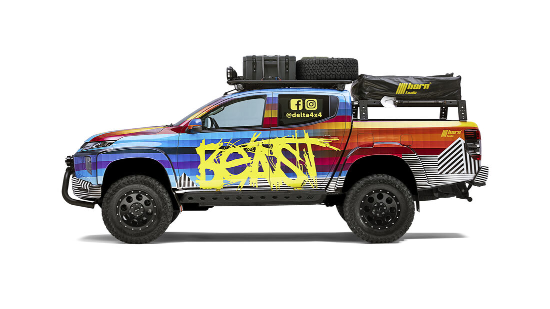 Se a Mitsubishi L200 já é uma das grandes ‘artistas’ do todo-o-terreno, então esta colorida versão especial inspirada na Pop Art eleva muito a fasquia em matéria de credenciais dinâmicas. A mais recente criação da Delta 4×4, empresa alemão especializada na produção de peças e acessórios para melhorar as capacidades de vários veículos fora de estrada, tem por base a L200 na versão equipada com conhecido 2.2 Di-D de quatro cilindros turbodiesel com 150 cv e 400 Nm às 1750 rpm, mas com uma nova suspensão que aumenta a altura ao solo em 14 cm e cavas das rodas 40 mm mais largas. Isto para poder receber novos pneus de todo o terreno Mickey Thompson Baja Boss, montados em jantes de 18 polegadas Klassik_B.
