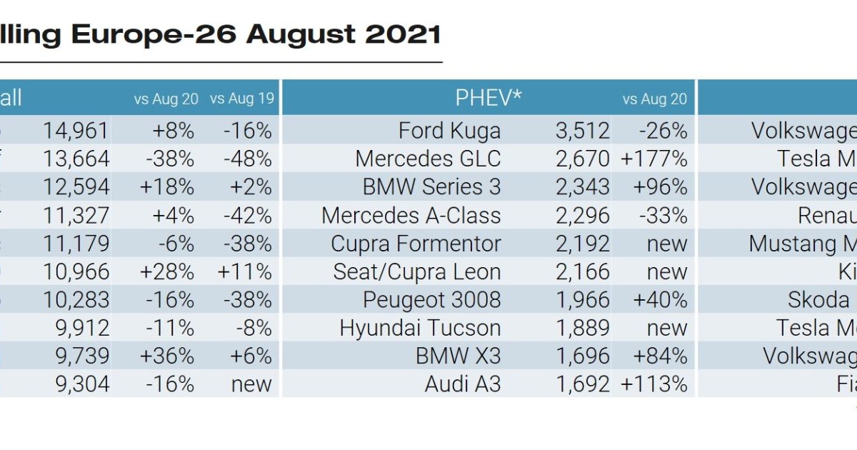 O segmento dos BEV e PHEV atingiu assim 21 por cento de cota de mercado, contra 20% por cento dos Diesel. Os veículos a gasolina representaram 56% das vendas de automóveis novos em agosto.