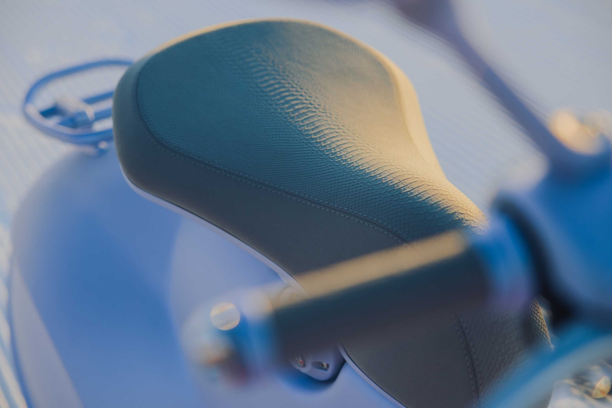 Com o seu design inspirado nas paisagens geladas e na beleza etérea do inverno, a Vespa 946 Snake destaca-se pela sua pintura azul iridescente em tons gelados que homenageiam a pureza e a força das paisagens nevadas. Neste cenário glaciar, a inspiração da serpente é transmitida através dos punhos do guiador e do selim, modelados para recordar a textura suave da pele do animal. A serpente cromada que figura no tampão de combustível e no guarda-lamas completa um projeto de design que combina força, graça e originalidade.