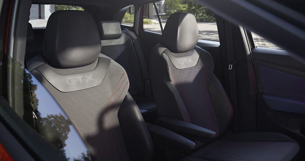 Já no interior, a tónica desportiva foi aplicada com um tratamento distinto de alguns materiais, além do contraste de cor entre a luz ambiente azul com os apontamentos a vermelho, como os pespontos no tablier. A insígnia GTX surge ainda nos bancos e no volante. O condutor terá direito a um novo sistema de head-up display (HUD) com realidade aumentada, fazendo ainda uso de uma faceta de conectividade avançada que lhe permitirá ser permanentemente atualizado.