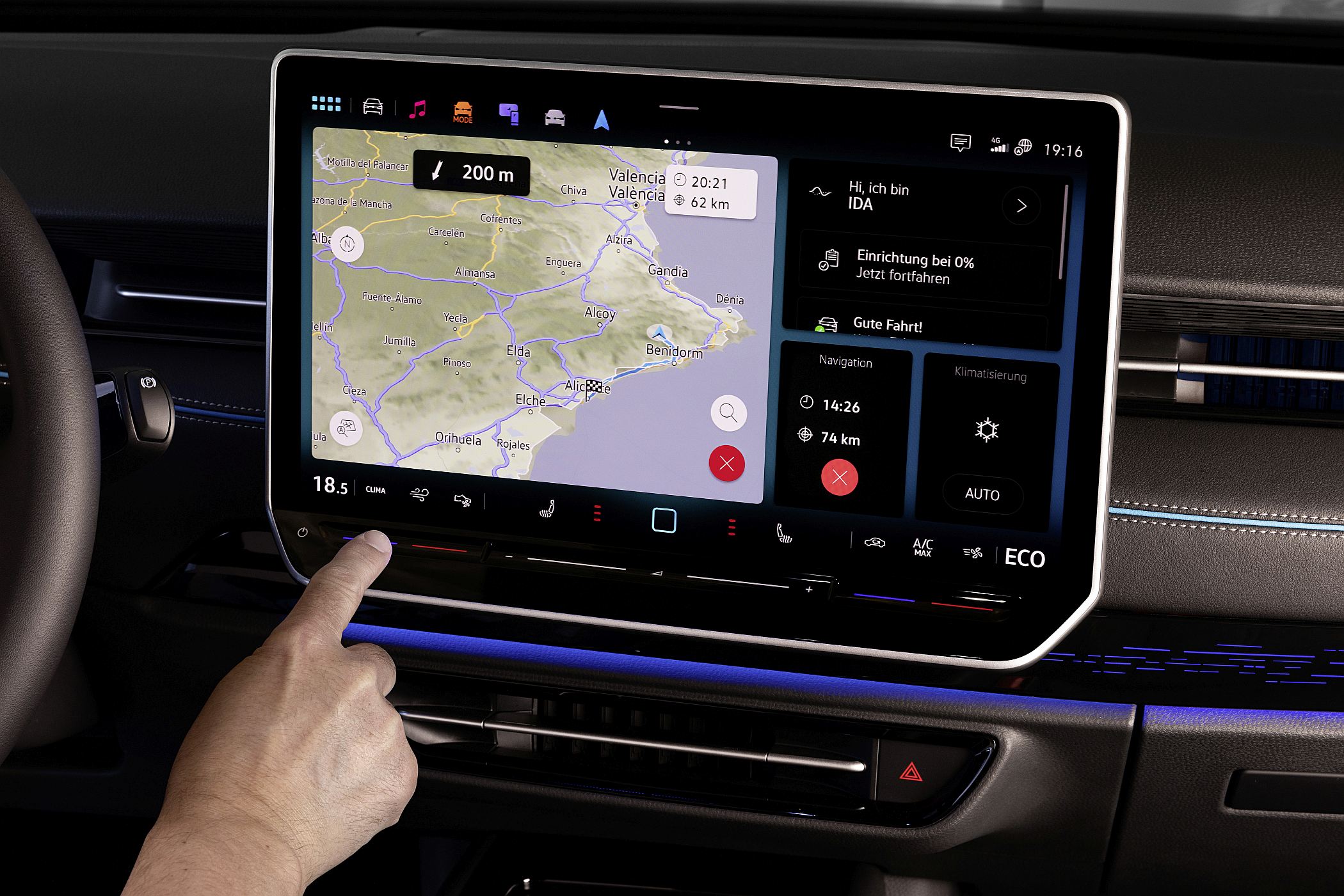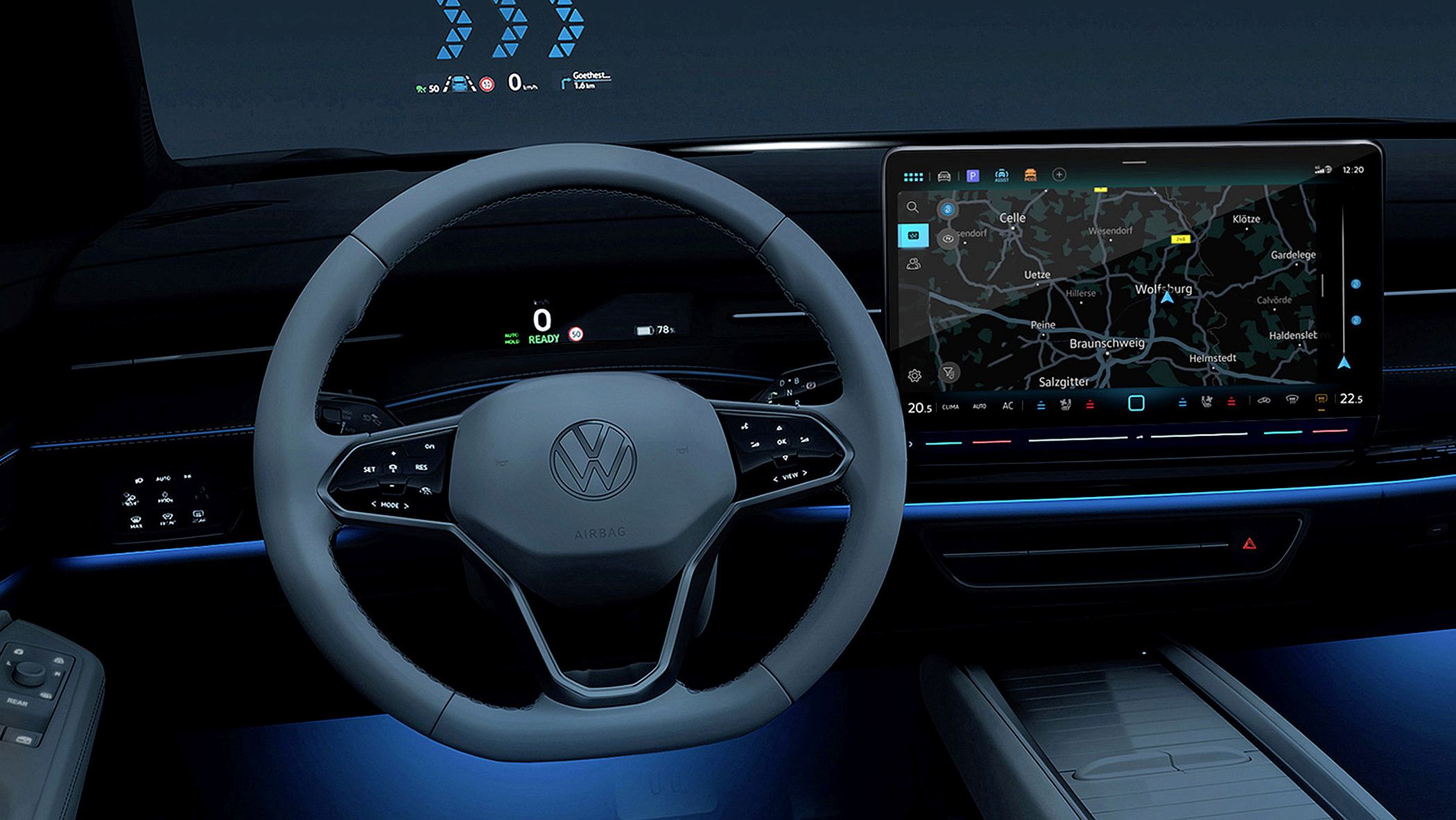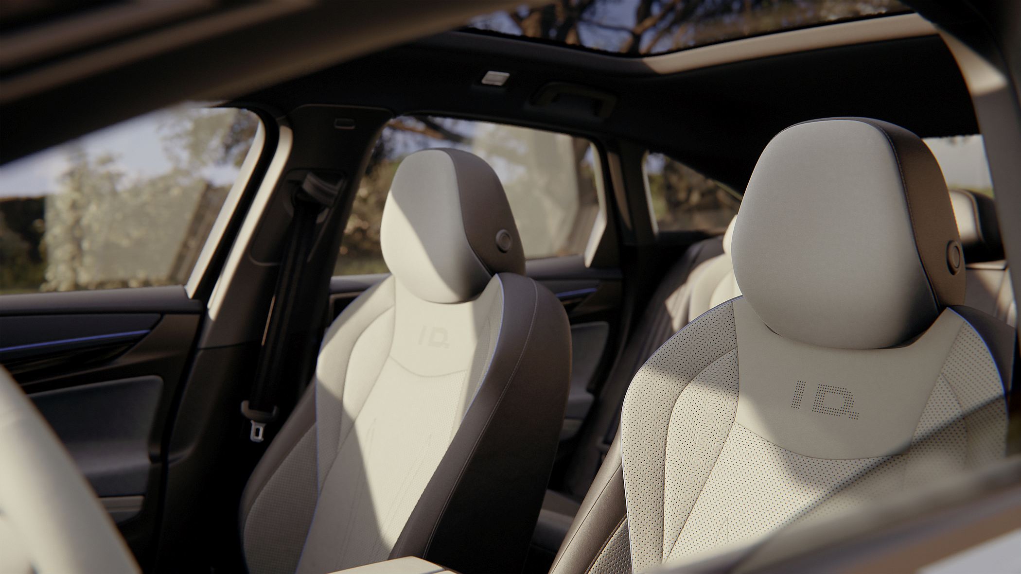 Adicionalmente, a barra deslizante de toque junto ao ecrã central passa a ter também retroiluminação para melhor ativação à noite. Já no que toca aos elementos de conforto, o ID.7 recorre a novos bancos com massagem e a tejadilho panorâmico regulável eletronicamente, com ‘smart glass’, pode ser alternado entre configurações opaca e transparente, através de controlo tátil. À semelhança de várias outras funções no ID.7, o tejadilho também pode ser operado por meio de comandos de voz naturais – é acionado através do novo assistente de voz IDA.
