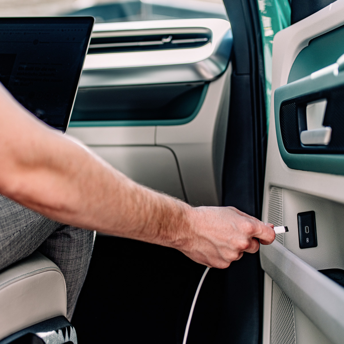 De série, estão disponíveis três portas USB-C para fornecer energia a smartphones, consolas de jogos, computadores portáteis e tablets, duas das quais com capacidade de transferência de dados (localizadas do lado direito, junto à coluna da direção), enquanto uma terceira está posicionada na porta do passageiro da frente. Os clientes podem ainda encomendar três portas USB adicionais, uma na base do espelho retrovisor interior e as restantes nas duas portas deslizantes. Em breve, estarão disponíveis mais duas portas nas laterais do compartimento de carga.