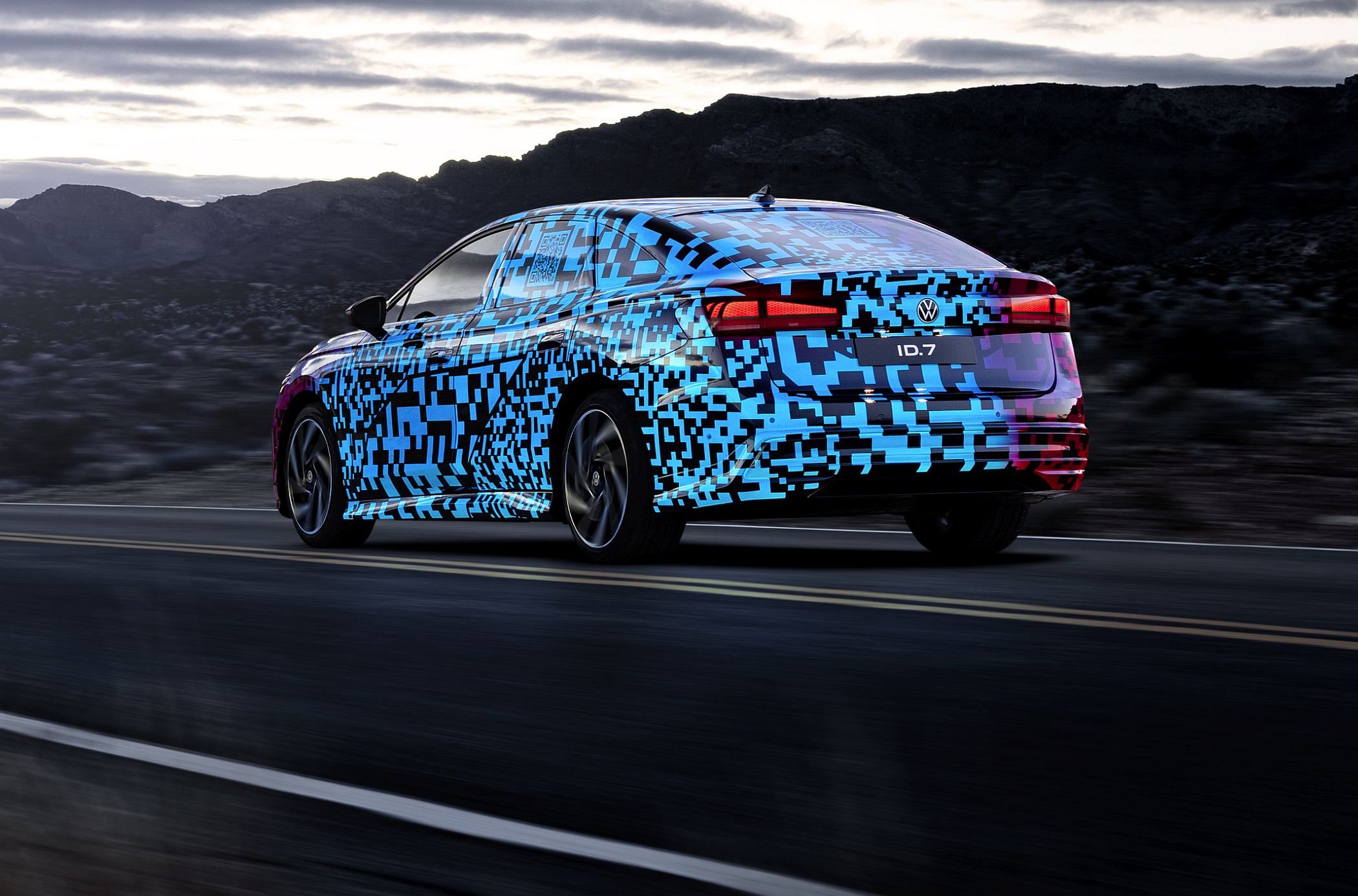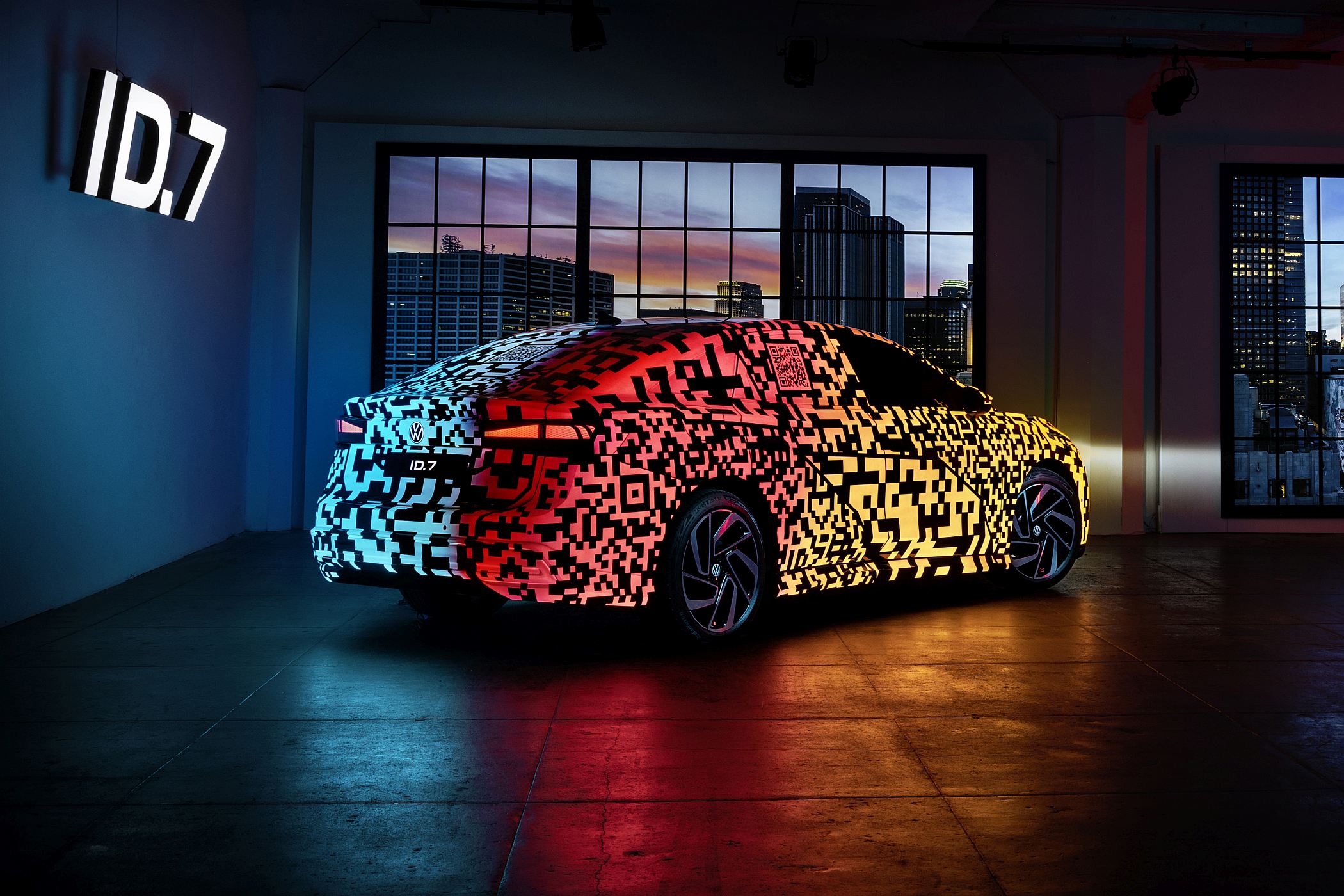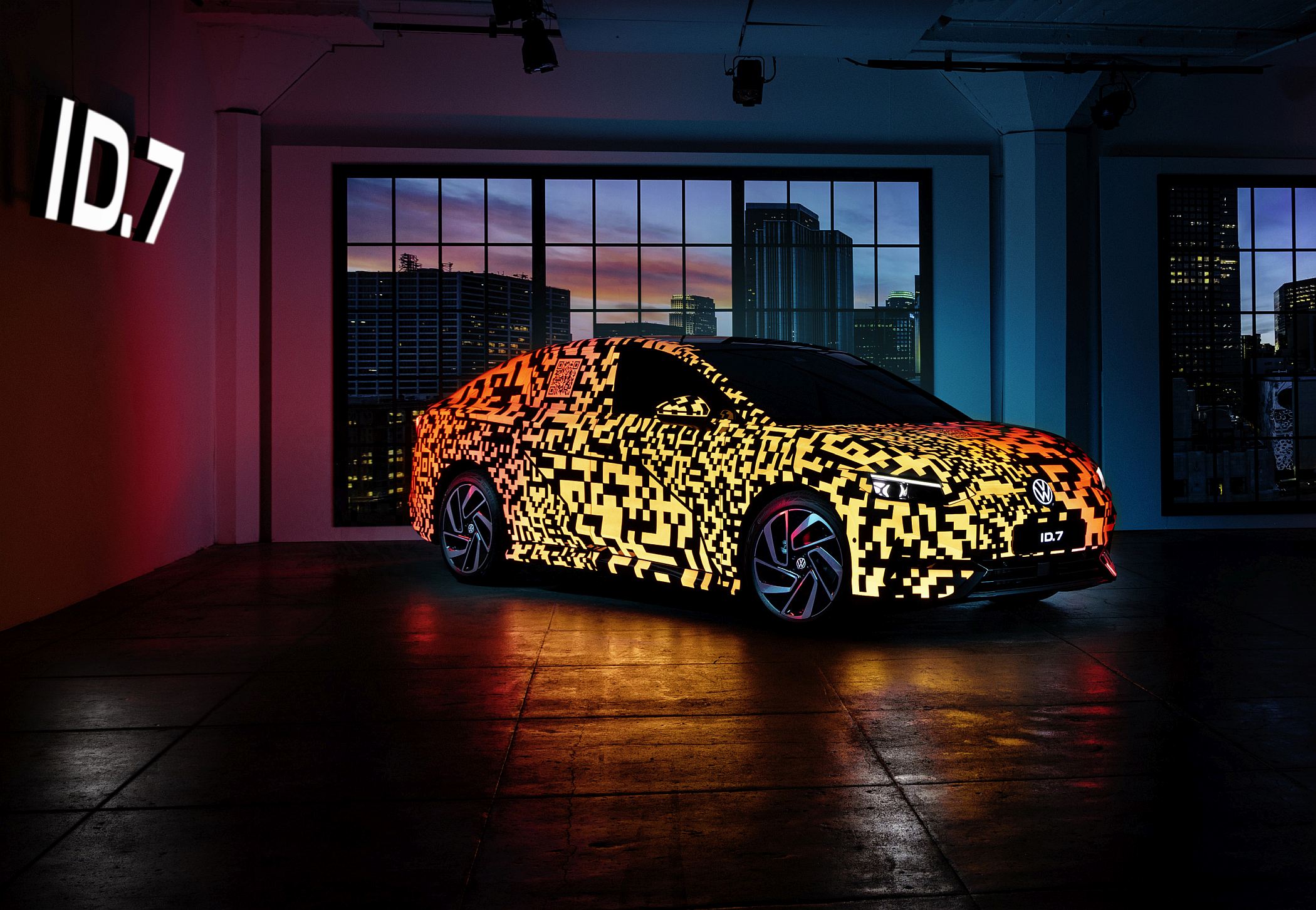 O modelo a expor estará envolto em camuflagem mais evoluída com uma pintura multicamada (40 camadas) que consegue criar determinados efeitos de luz em partes específicas do veículo, efetuando também uma ligação com o mundo digital por intermédio de códigos QR e efeitos eletroluminescentes que podem até variar consoante o ritmo da música no habitáculo. O ID.7 foi antecipado pelo ID. Aero concept revelado anteriormente na China, com um conceito aerodinâmico mais apurado que possibilitará também atingir autonomias mais elevadas.