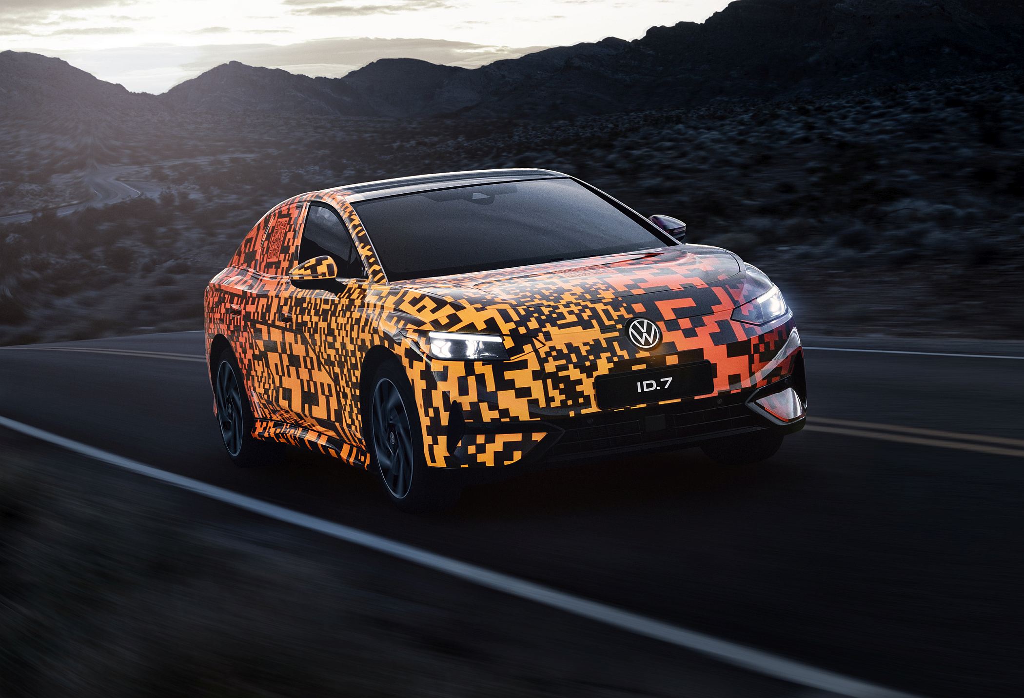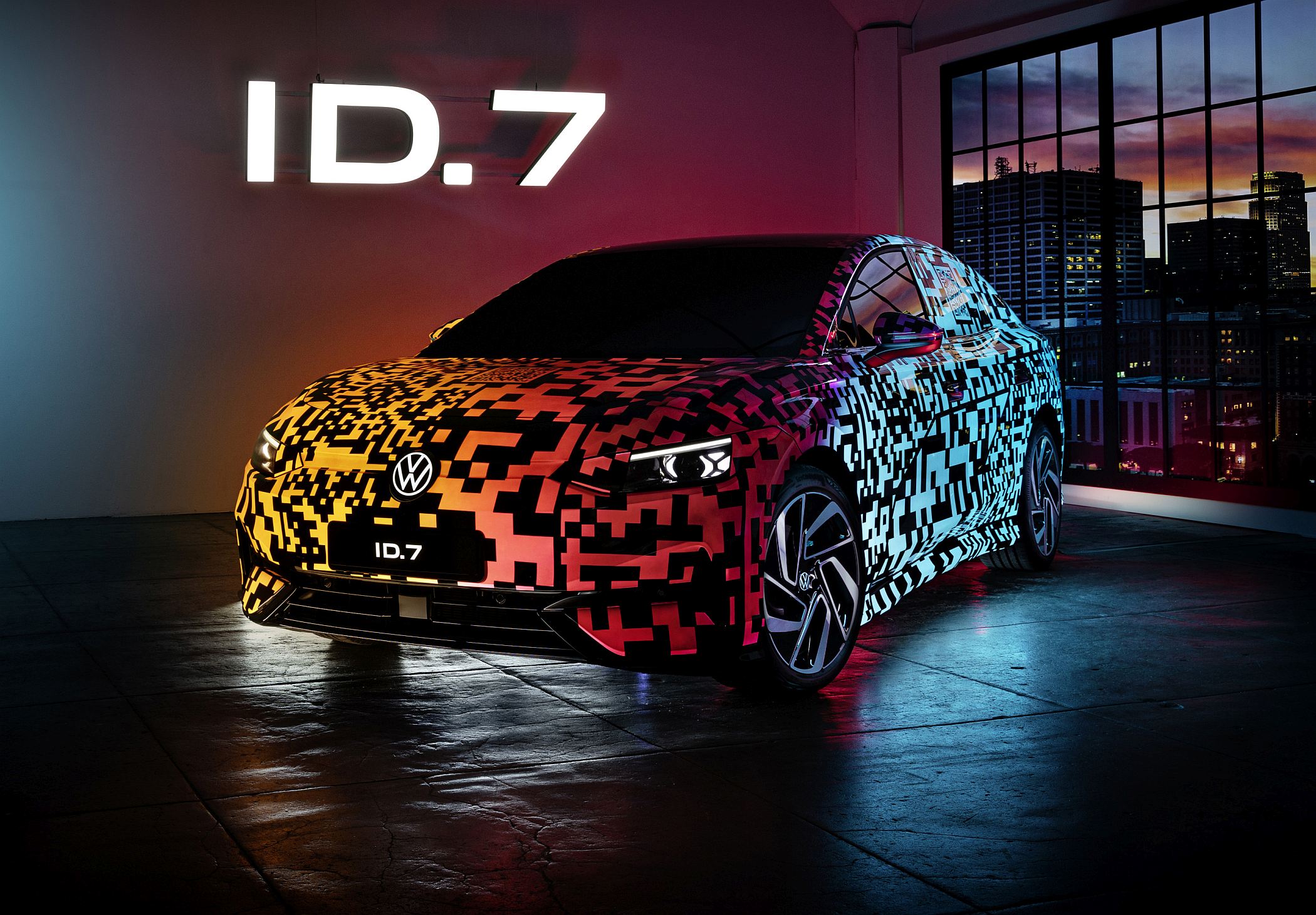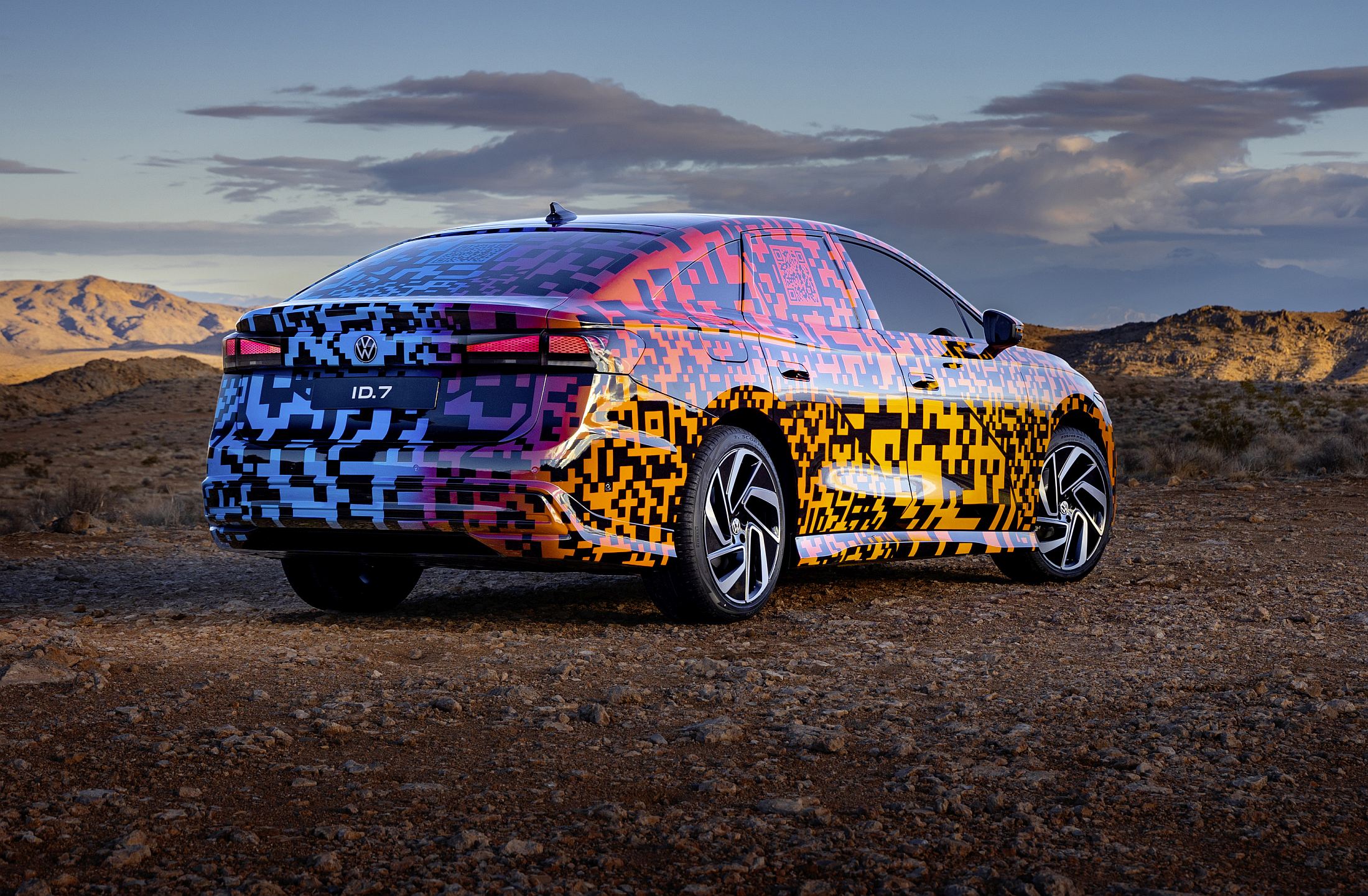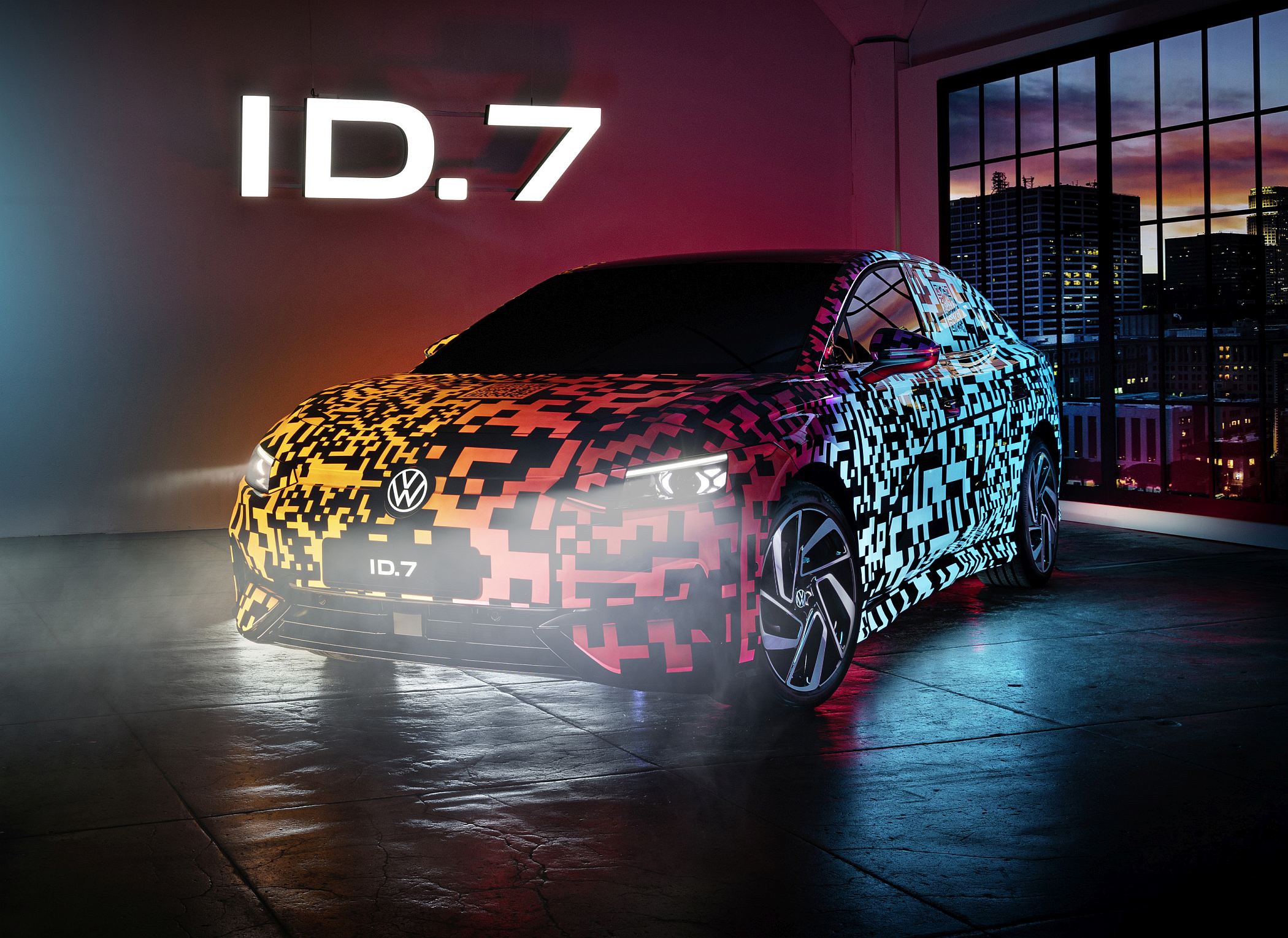 O modelo a expor estará envolto em camuflagem mais evoluída com uma pintura multicamada (40 camadas) que consegue criar determinados efeitos de luz em partes específicas do veículo, efetuando também uma ligação com o mundo digital por intermédio de códigos QR e efeitos eletroluminescentes que podem até variar consoante o ritmo da música no habitáculo. O ID.7 foi antecipado pelo ID. Aero concept revelado anteriormente na China, com um conceito aerodinâmico mais apurado que possibilitará também atingir autonomias mais elevadas.
