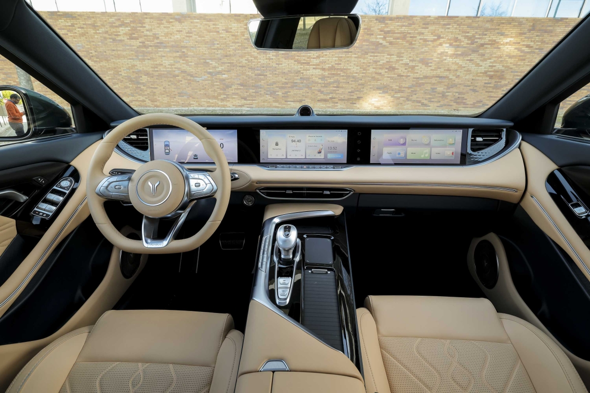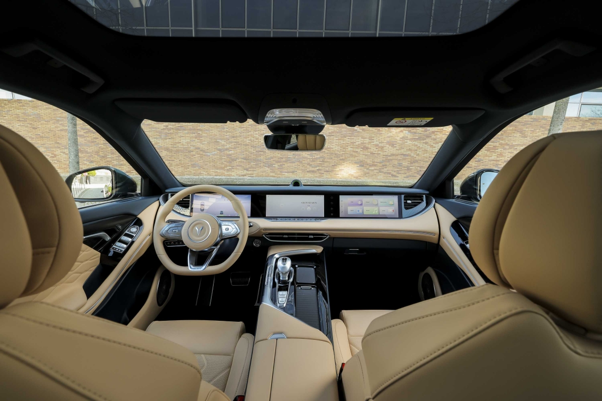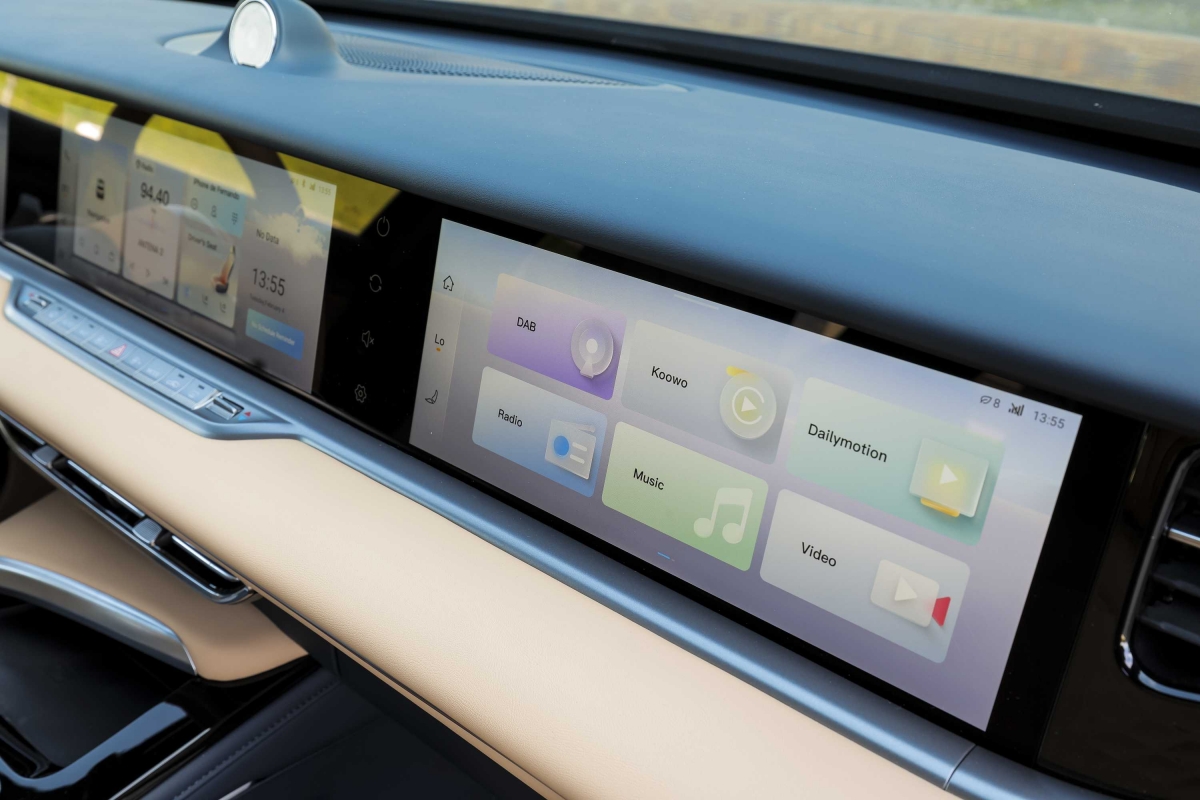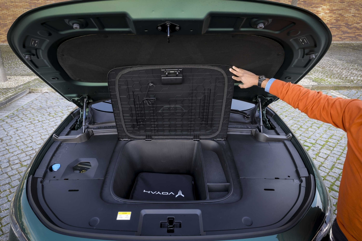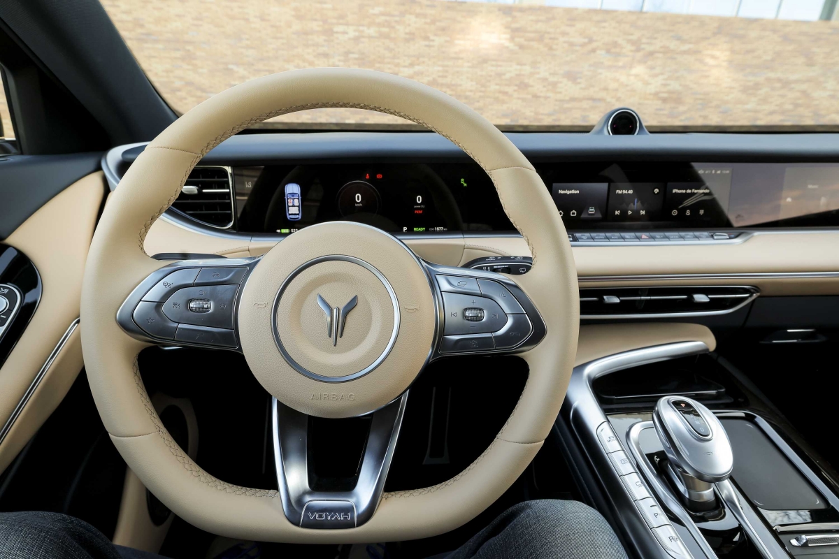 O Voyah Free combina um exterior elegante e desportivo com um habitáculo espaçoso e tecnológico. O equipamento não fica a dever nada aos seus rivais e inclui: teto panorâmico, bancos em pele Nappa com massagem e ventilação, três grandes ecrãs de 12,3 polegadas incluindo o painel de instrumentos em duas configurações: completa ou minimalista, mediante a pressão de um botão que eleva ou baixa o tabliê. Algo que certamente vai impressionar miúdos e graúdos. O sistema de infoentretenimento funcionou sem dar problemas e suporta Apple Car Play e Android Auto.