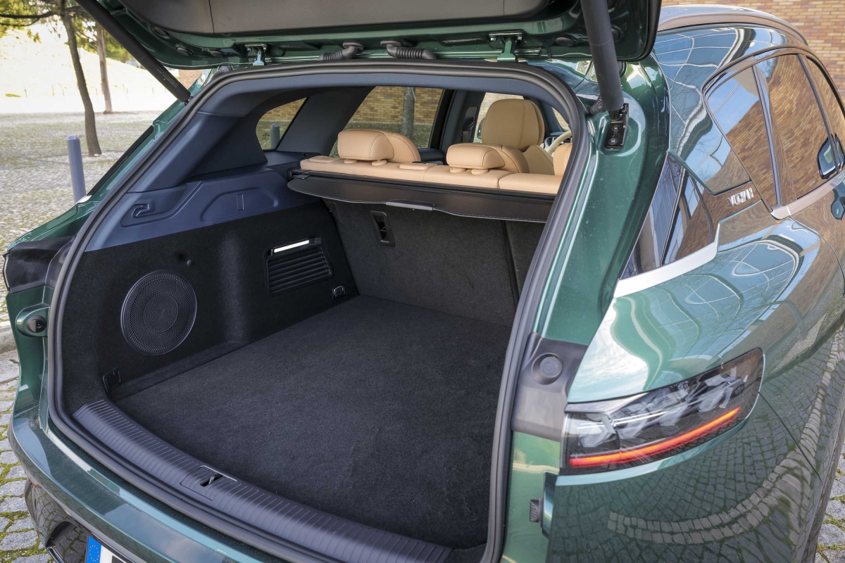 Tem ainda um sistema de som de alta-fidelidade Dynaudio e iluminação ambiente adaptável. O banco traseiro permite que três adultos possam viajar confortavelmente com amplo espaço tanto para as pernas, como para a cabeça. Na bagageira com 560 litros cabe tudo o que uma família precisa de transportar para as férias e ocasionalmente, grandes objetos com os 1320 litros disponibilizados rebatendo o banco traseiro. Se ainda assim faltar espaço, na frente existe ainda um frunk com 72 litros, onde é possível colocar mais do que apenas os cabos de carregamento.