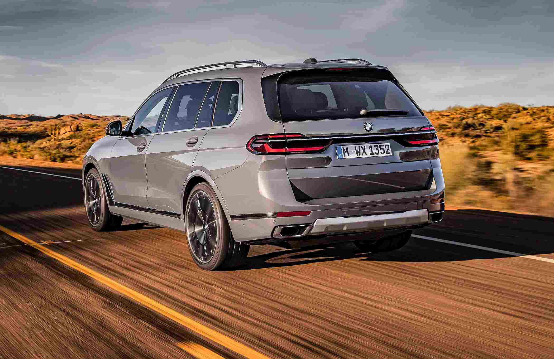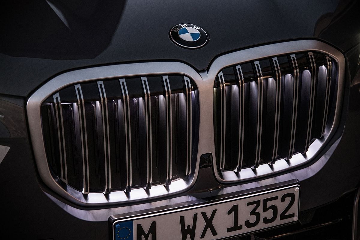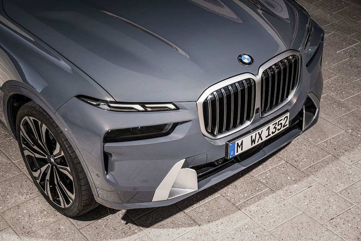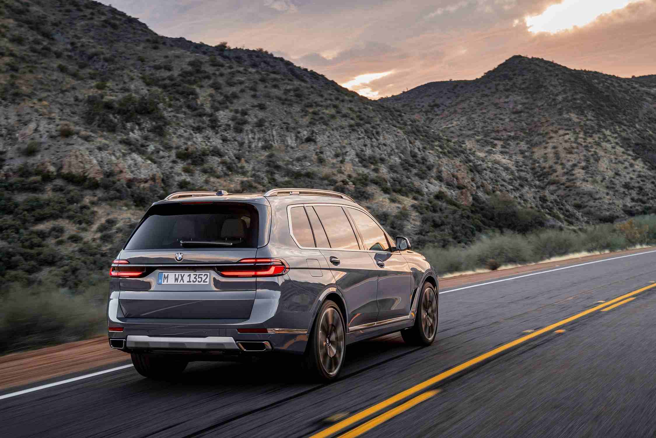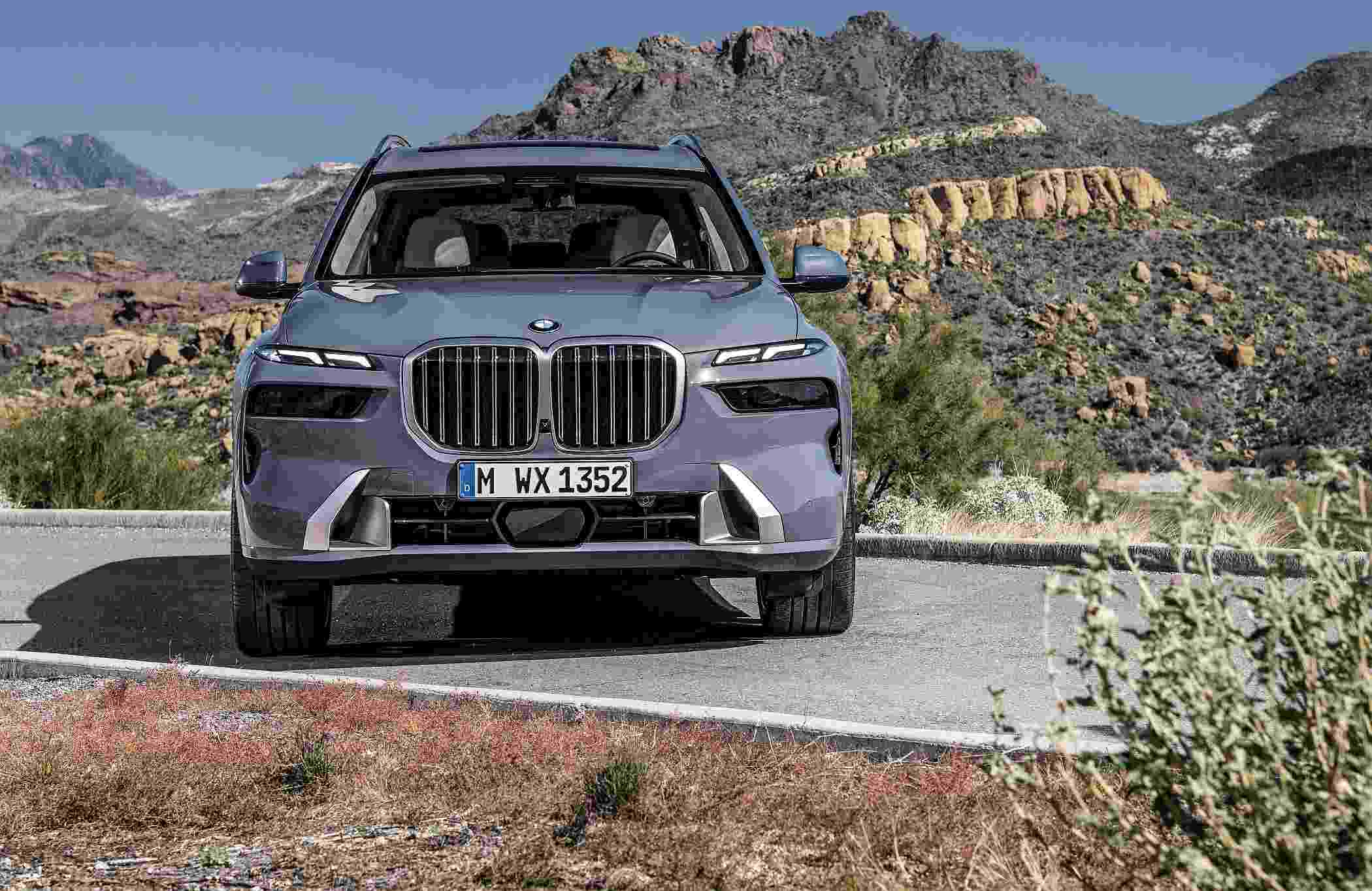 A nova estrutura visual da dianteira é, de acordo com a marca bávara, uma forma de reforçar a presença imponente do X7 quando visto de frente. A grelha pode ser iluminada, sendo de série no modelo de topo, o X7 M60i xDrive, e opcional nos restantes. Na traseira, o estilo dos farolins esguios diferencia-se agora por ter uma maior estruturação tridimensional, além de uma barra cromada a unir os grupos óticos traseiros.