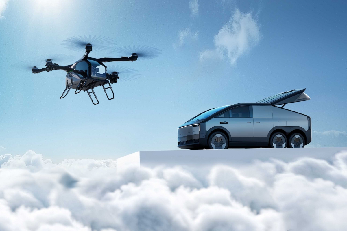 O veículo incorpora a primeira plataforma de energia de extensão de alcance de carboneto de silício de 800 volts do mundo, alcançando um alcance CLTC combinado superior a 1.000 km para satisfazer as necessidades de viagens de longa distância. A sua tração de três eixos e seis rodas com direção nas rodas traseiras melhora a capacidade de carga e o desempenho fora de estrada. Funcionando como uma estação móvel de sobrealimentação, o módulo terrestre alimenta o módulo aéreo durante a condução e o estacionamento, suportando até seis voos com uma carga completa – assegurando que está sempre pronto para descolar imediatamente.