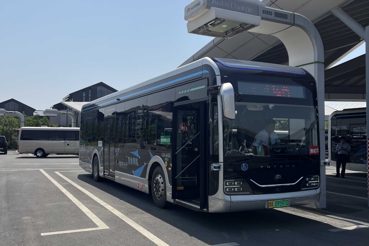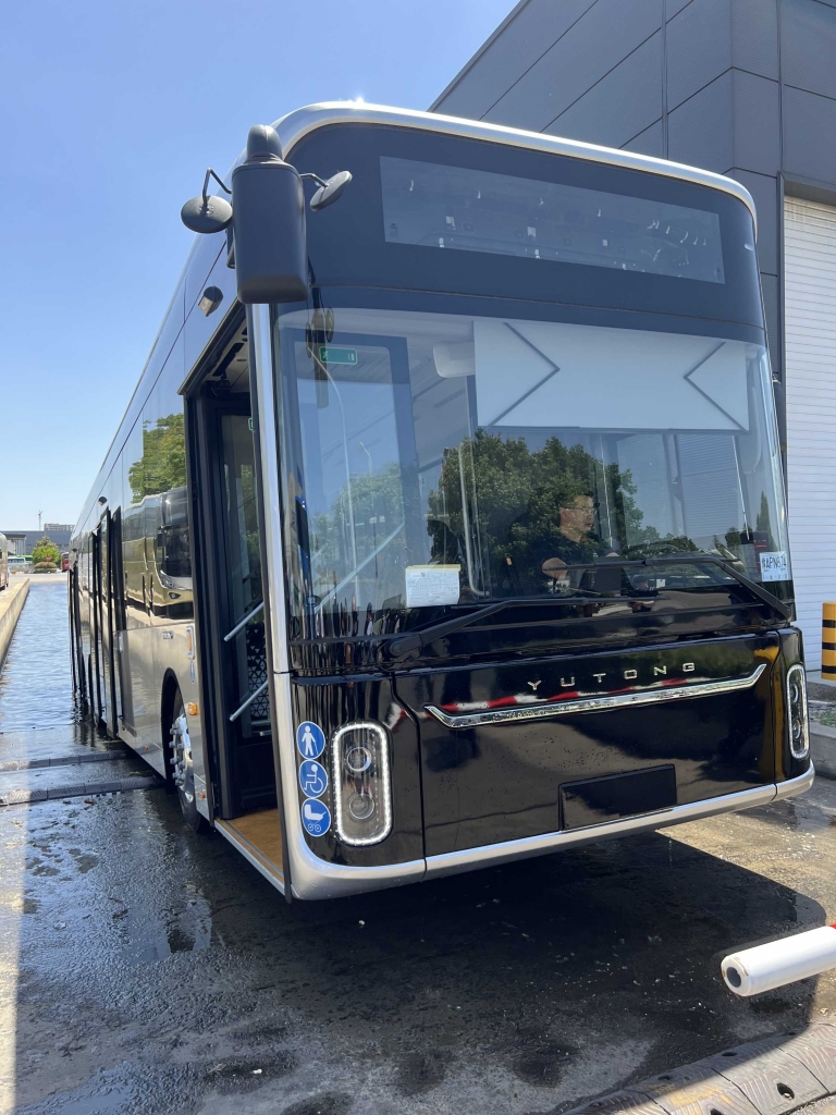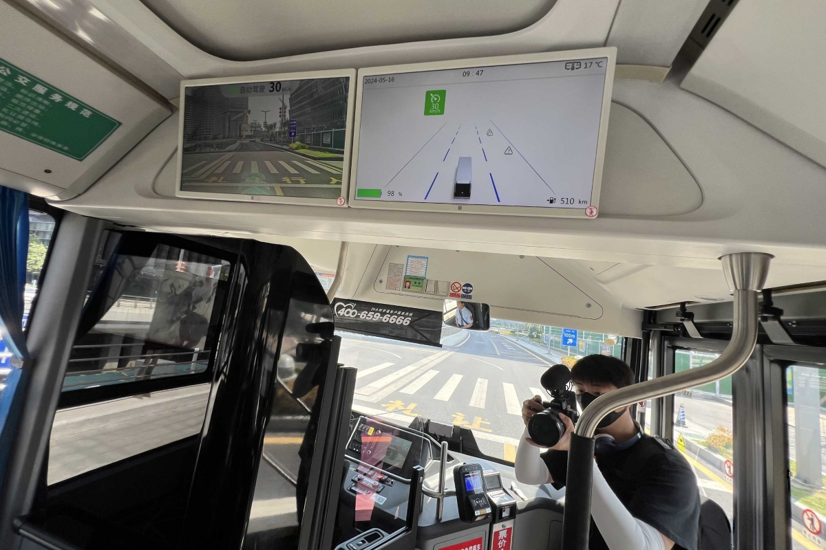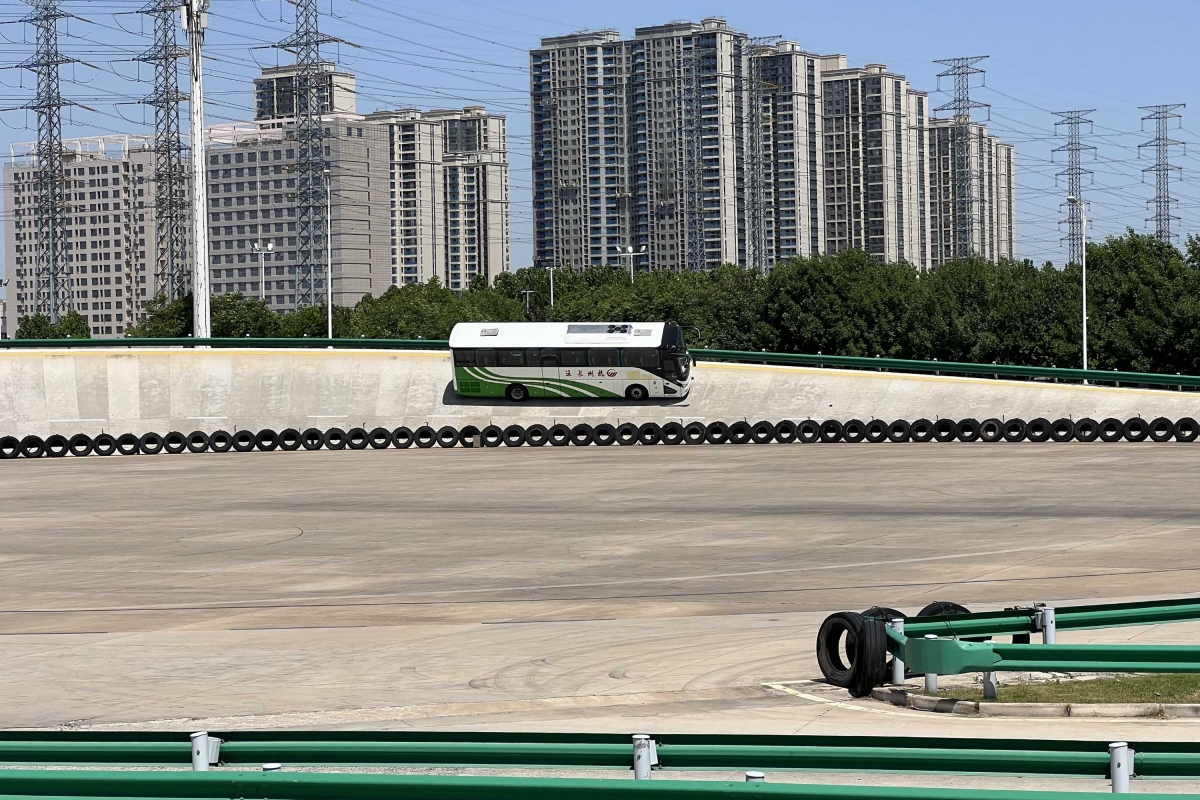 Os autocarros da Yutong estão equipados com as mais recentes tecnologias de segurança e ajuda à condução (ADAS), e naturalmente, a empresa também quer estar na linha da frente no que toca à condução autónoma. Em oito cidades na China, os autocarros autónomos já são uma realidade. Por causa da legislação, ainda é obrigatório estar presente um condutor, que poderá intervir se necessário, mas o veículo faz tudo sozinho, até dirigir-se à estação de carregamento para repor a carga na bateria. Quinze minutos são suficientes para 100 quilómetros de autonomia. Experimentámos um dos 12 autocarros autónomos que circulam todos os dias no distrito financeiro da cidade de Zhengzhou entre 9h e as 6h da tarde. O percurso com 19 quilómetros de extensão tem 35 estações e é cobrado 1 yuan (0,13 euros) por pessoa, exceto a maiores de 60 anos. Funciona há 4 anos com mais de 120 mil quilómetros percorridos.