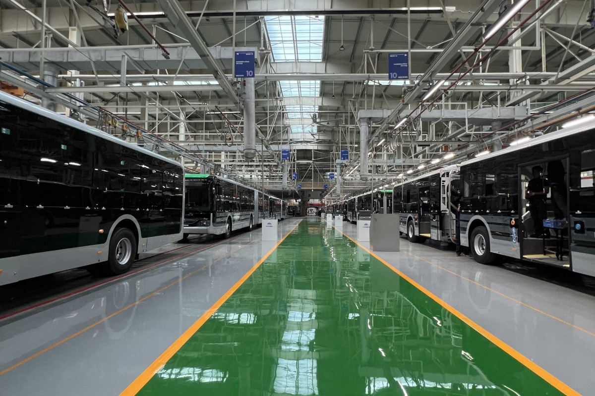 Das três linhas de montagem – que empregam tecnologia de ponta para a indústria e os responsáveis da Yutong não receiam referir que alguma é de origem alemã –, sai um autocarro a cada 45 minutos e durante as 7,4 horas de trabalho são produzidos 32 veículos, que podem ter entre 12 e 18 metros de comprimento.