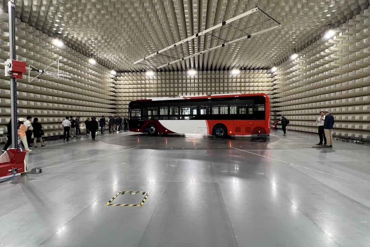 Embora a empresa produza também outro tipo de veículos especiais – como camiões para utilização nas minas e para o serviço de limpeza urbana –, o foco da visita às instalações foram os autocarros, e em particular, os que são movidos a novas energias: Híbridos, hidrogénio e elétricos. As mais de 3 mil patentes registadas demonstram a aposta que é feita no importante departamento de “R&D” (investigação e desenvolvimento), que emprega cerca de três mil pessoas e onde anualmente são reinvestidos 5% dos lucros da empresa. Os motores elétricos, que são produzidos por uma empresa que pertence à Yutong, são montados diretamente no eixo dos autocarros. Um exemplo prático patenteado pela marca, que reduz o espaço ocupado e o peso em 30%, baixa o consumo de energia em 15% e aumenta até 93% a eficiência do veículo.